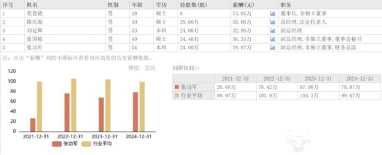 但这对张功军的薪酬并未产生太大的影响,财报显示,他2024年的薪酬较2023年上涨10.89万元,达到了78.87万元,在永鼎股份的高管团队中居于首位。
