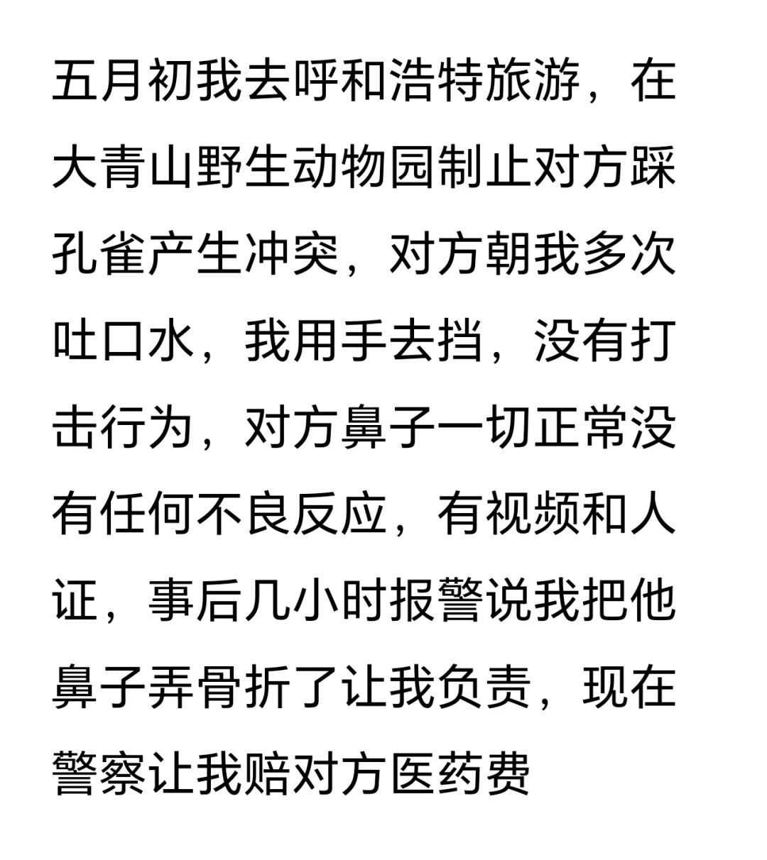 制止对方踩孔雀,对方说鼻子骨折让我负责 见义勇为 正当防卫 不文明行为 法律援助