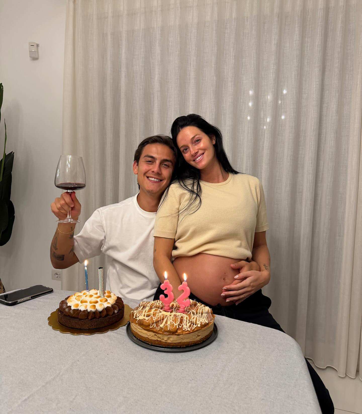 虎扑11月16日讯阿根廷前锋迪巴拉迎来了自己32岁生日,他通过Instagram发布了与妻子的合影——他的爱妻显然已有孕在身。
