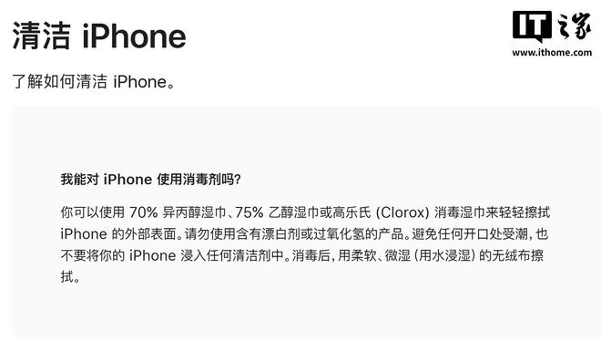 苹果公司也一直建议用户,切勿使用含有强效化学成分的刺激性清洁剂来擦拭iPhone,因为这些化学物质会分解漆面涂层。