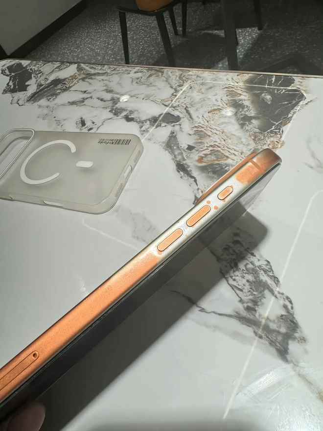 IT之家11月16日消息,网友@Rui35052730于11月13日在X平台发布推文,分享了3张照片,称星宇橙iPhone17ProMax在使用湿巾清洁后,机身涂层被擦除。