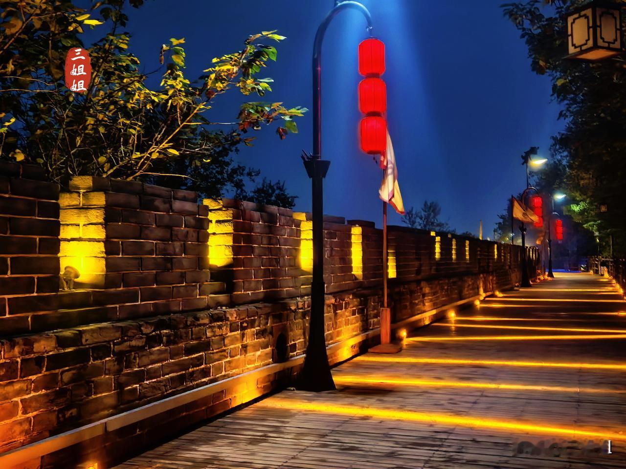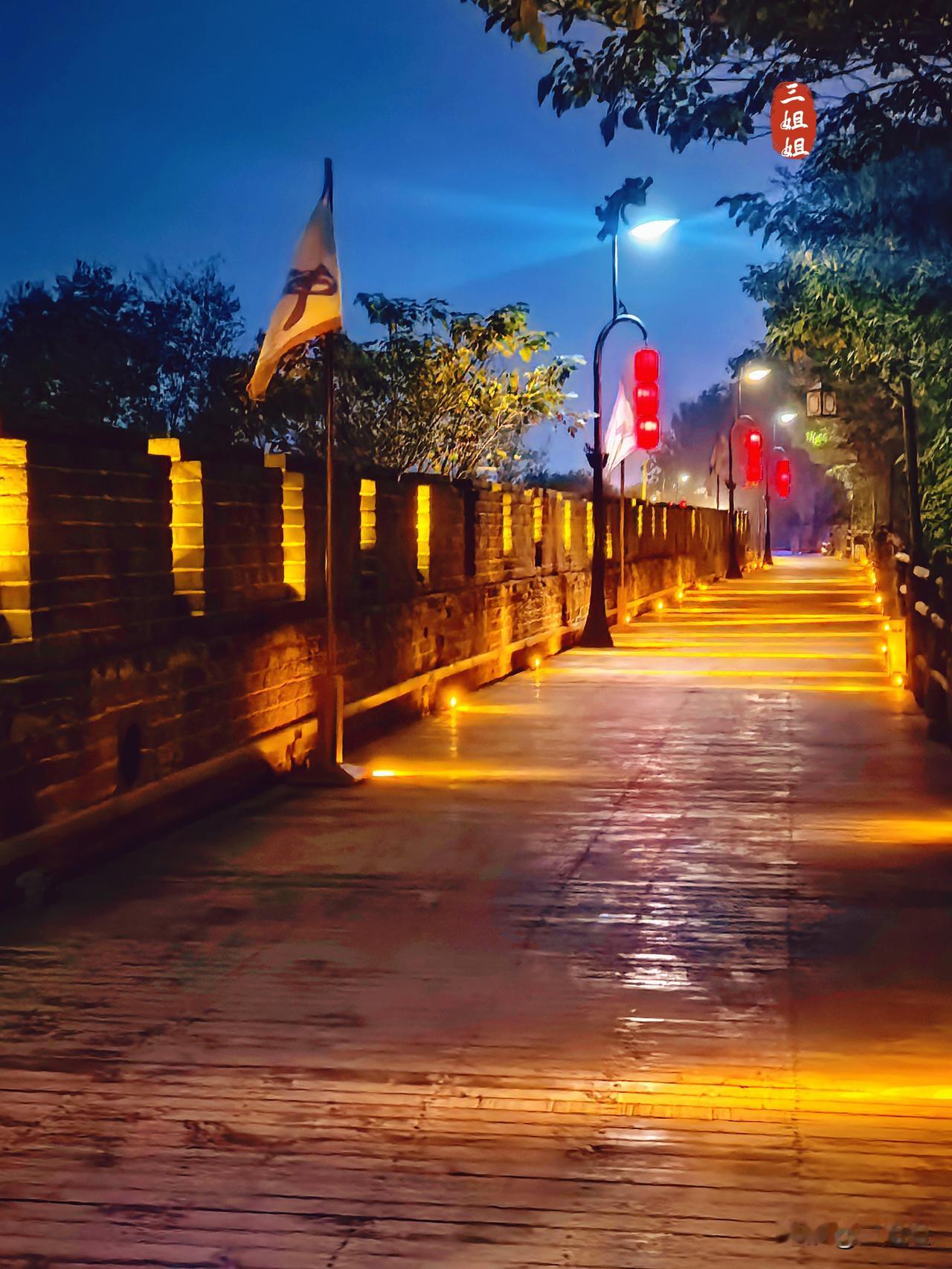 夜游开封城墙,月光似水流淌,灯火若隐若现,点亮了尘封的古老记忆。 开封城墙景区着