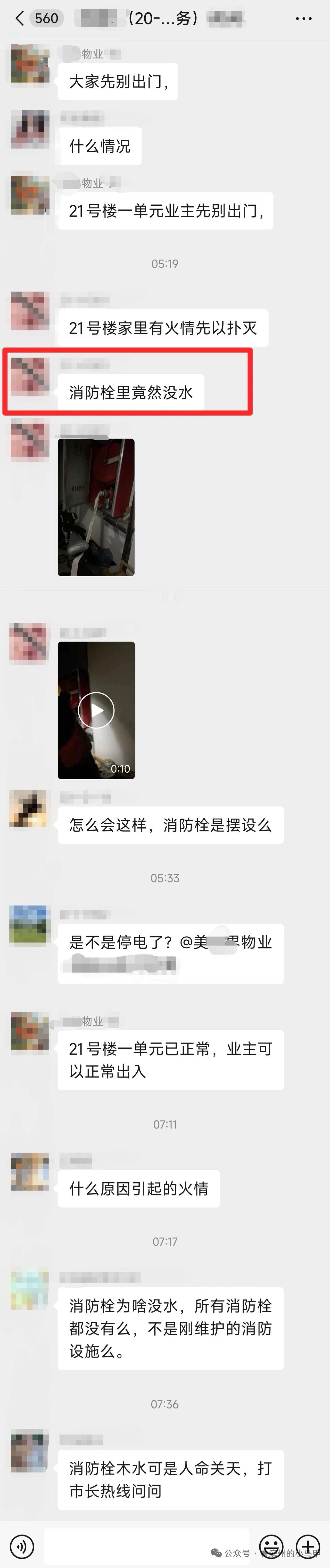 滨州一小区突发火情!一细节引发关注 收到山东滨州市某小区业主吐槽: 11月16日凌晨时分,山东滨州市某小区有业主家中突然起火。物业第一时间在业主群内发布警示:“大家先别出门”,试图稳定秩序并避免次生危险。随后,有业主在群内反馈:“21号楼家里火情已扑灭”。但紧随其后的消息却透露出更大的隐忧:“消防栓里竟然没水”。 从业主拍摄的现场视频可见,楼道内的消防栓箱体敞开,水带悬挂,却无水流喷出。这一细节引发群内广泛担忧:若火势初期无法依靠消防栓控制,后果不堪设想。 业主们的担忧从“火情本身”转向“消防设施的可靠性”。这种焦虑并非多余——消防栓作为高层建筑的“生命线”,其作用不仅在于灭火,更在于为居民逃生争取时间。一旦失效,无异于将居民置于危险的“真空地带”。 小编与住在该小区的友人了解,该小区消防栓一直没水,业主曾多次反映投诉,但无果。目前,起火原因仍在调查中,但消防栓“无水”的原因同样亟待查明。这些问题直接关系到小区消防系统的整体可靠性。 来源 看滨州