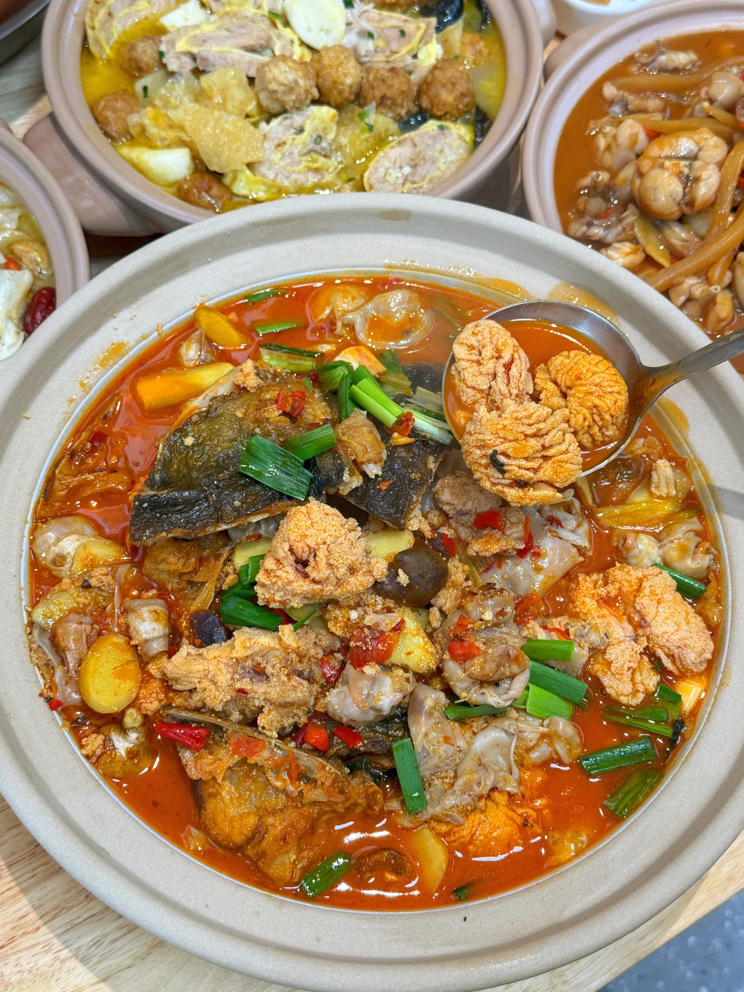 跟着本地人去吃的!不是预制菜!非网红店! 带我爸妈反复打卡了10多次了,基本上每道菜都下饭!📍叫:敏锅锅·炭炉砂锅煲!!份量大碗,真心平价好好吃😭😭全家福火锅!手工蛋卷+肉丸+木耳!越煮越入味,汤都喝了两碗!喜欢这口的建议直奔这里!!还有:牛蛙、鱼籽鱼泡、菌子鸡汤…菜单盲点都不踩雷!!