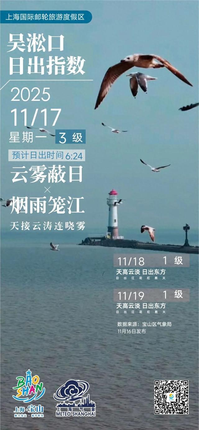 [吴淞口日出指数]11月17日3级云雾蔽日×烟雨笼江