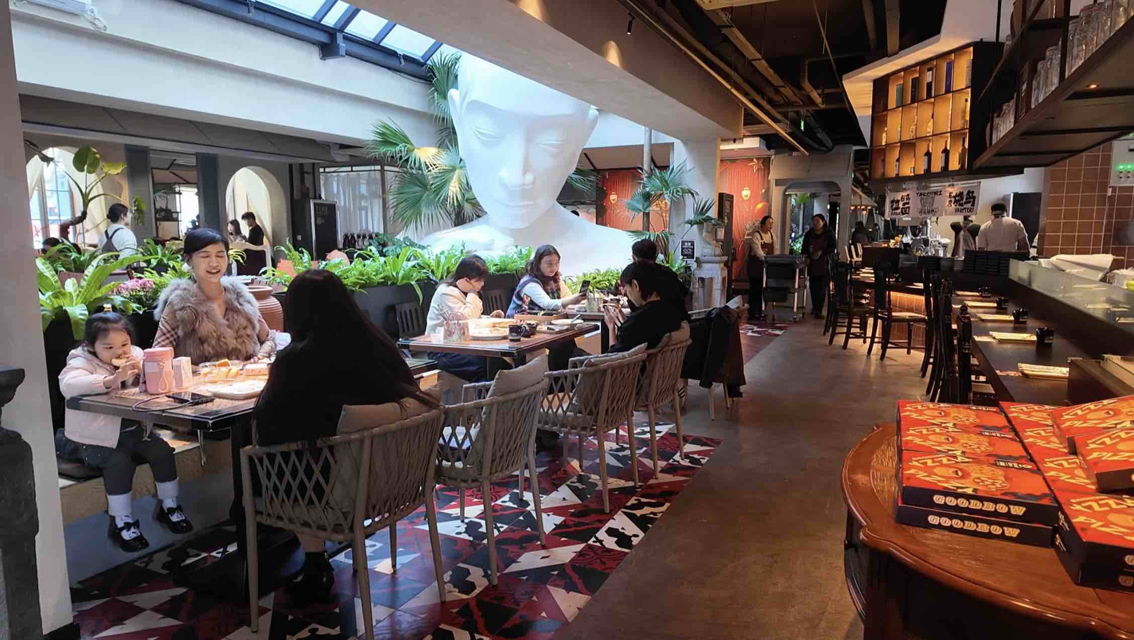然而,就在数月之前,这家餐厅还延续着传统的餐饮服务模式,营业收入一度面临挑战。山东凯瑞集团董事长助理侯明敬介绍:“这个项目原本是我们一个比较传统的项目,经营思路一度局限于固有模式。面对市场变化,我们不得不思考如何打造新场景、新模式、新业态,以满足消费者新的需求。我们不仅拆除了物理空间上的一道道墙,更重要的是拆除了内心的障碍之墙。”他表示,改造后,餐厅实现了从局部到无界、从单一餐饮到复合空间的转变,营业时长覆盖约16小时,吸引了全年龄段的客群,菜系和口味也打破了界限,博采众长。“这里既是餐饮场所,也是社交剧场,无论是进行妆造、约会还是品尝咖啡,都能找到合适的位置。”这一转变带来了显著效益,“客流同比增长了近200%,营业收入也实现了同步大幅提升。”