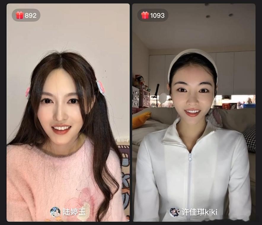 许佳琪的凌波仙子好有清冷感,直播间跟甜妹陆婷玉一起两个美女贴贴互相模仿对方的样子