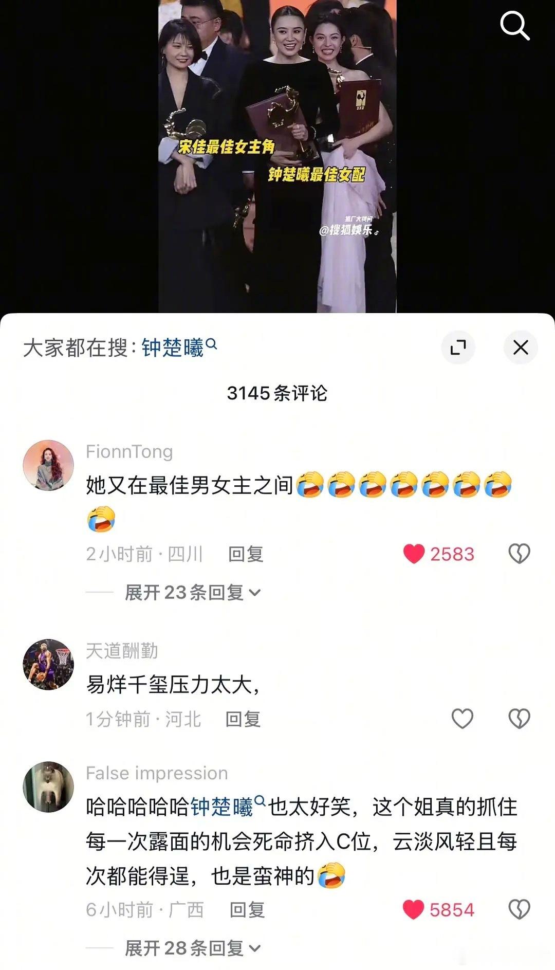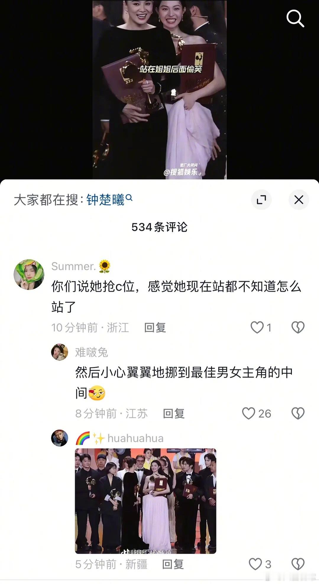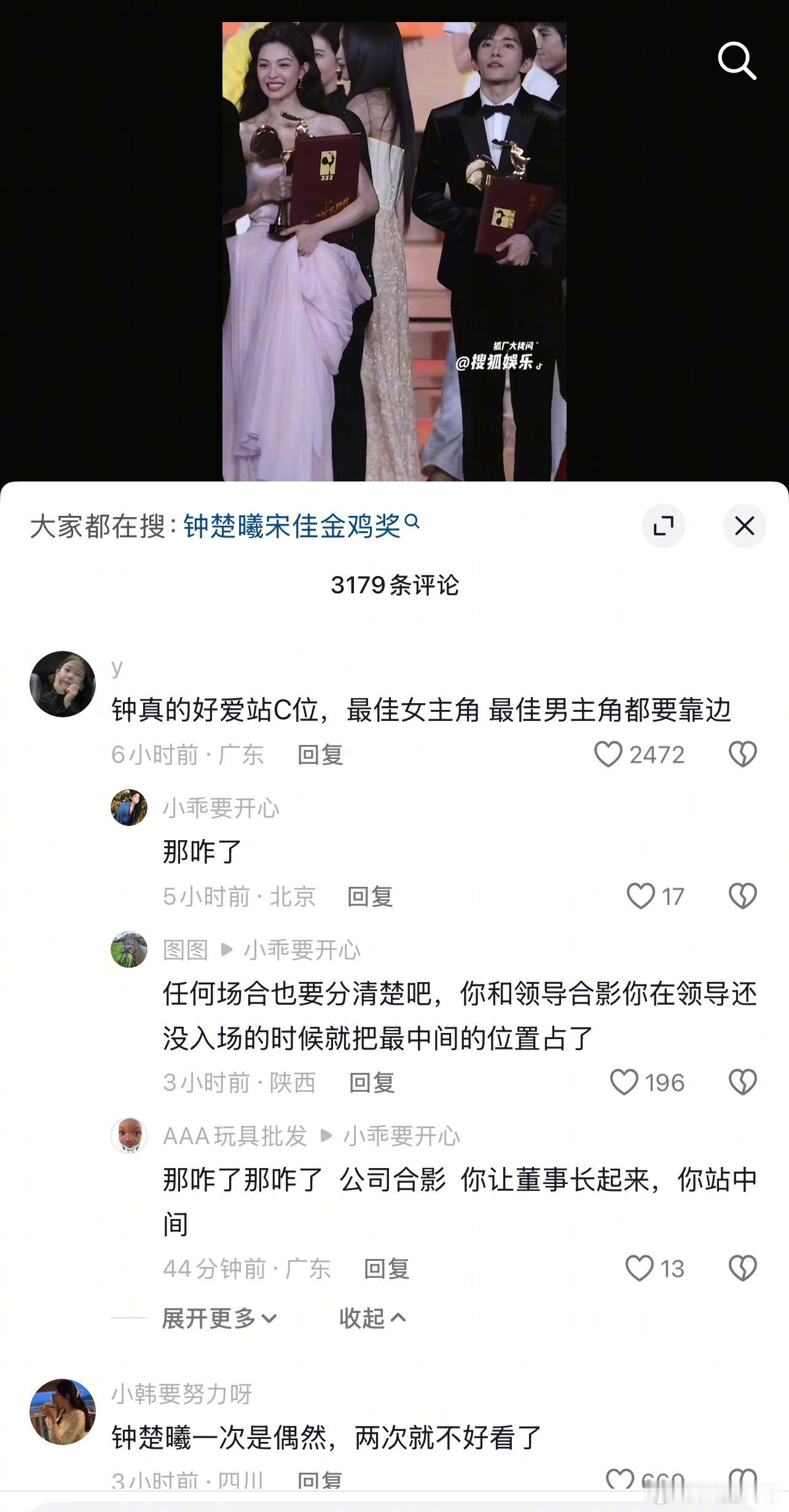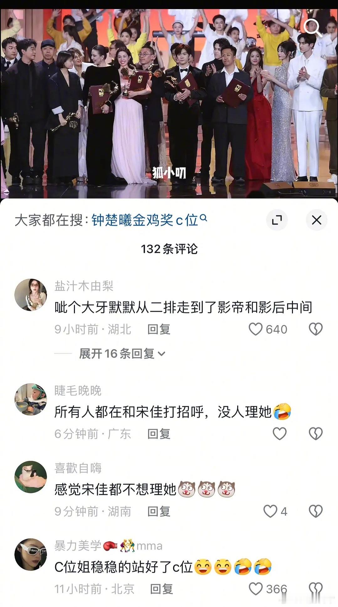 钟楚曦金鸡奖大合照站在宋佳和易烊千玺中间又被说抢C位