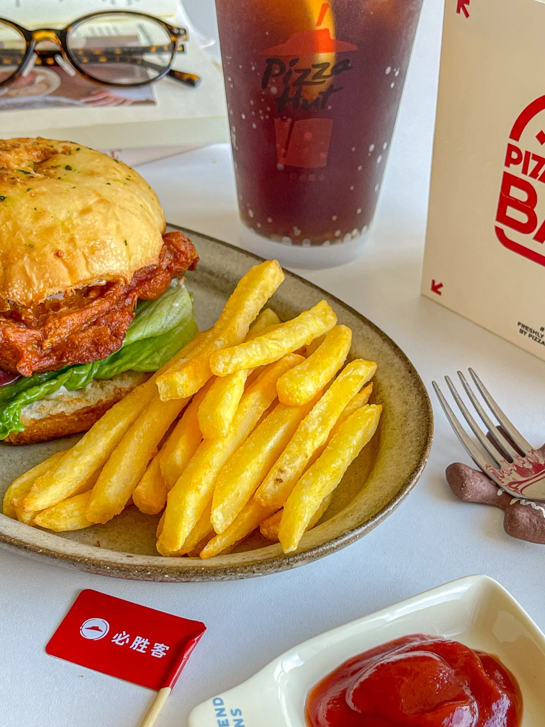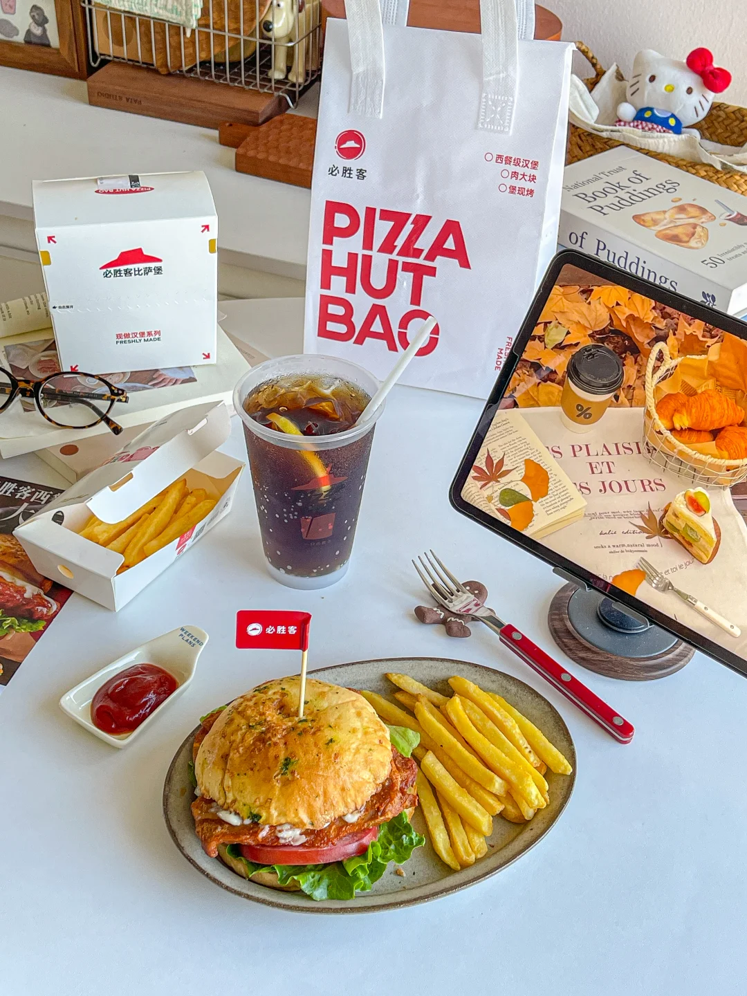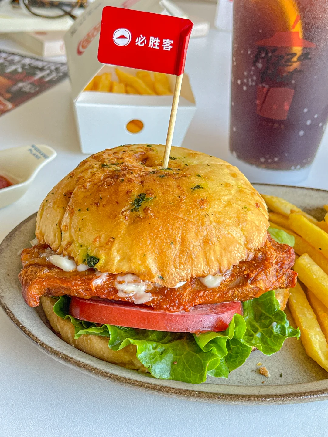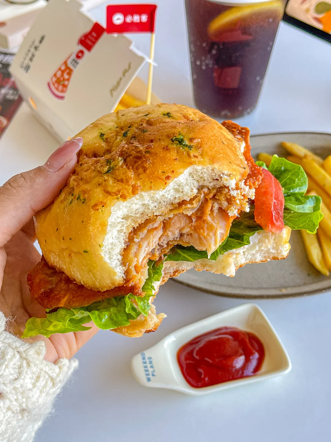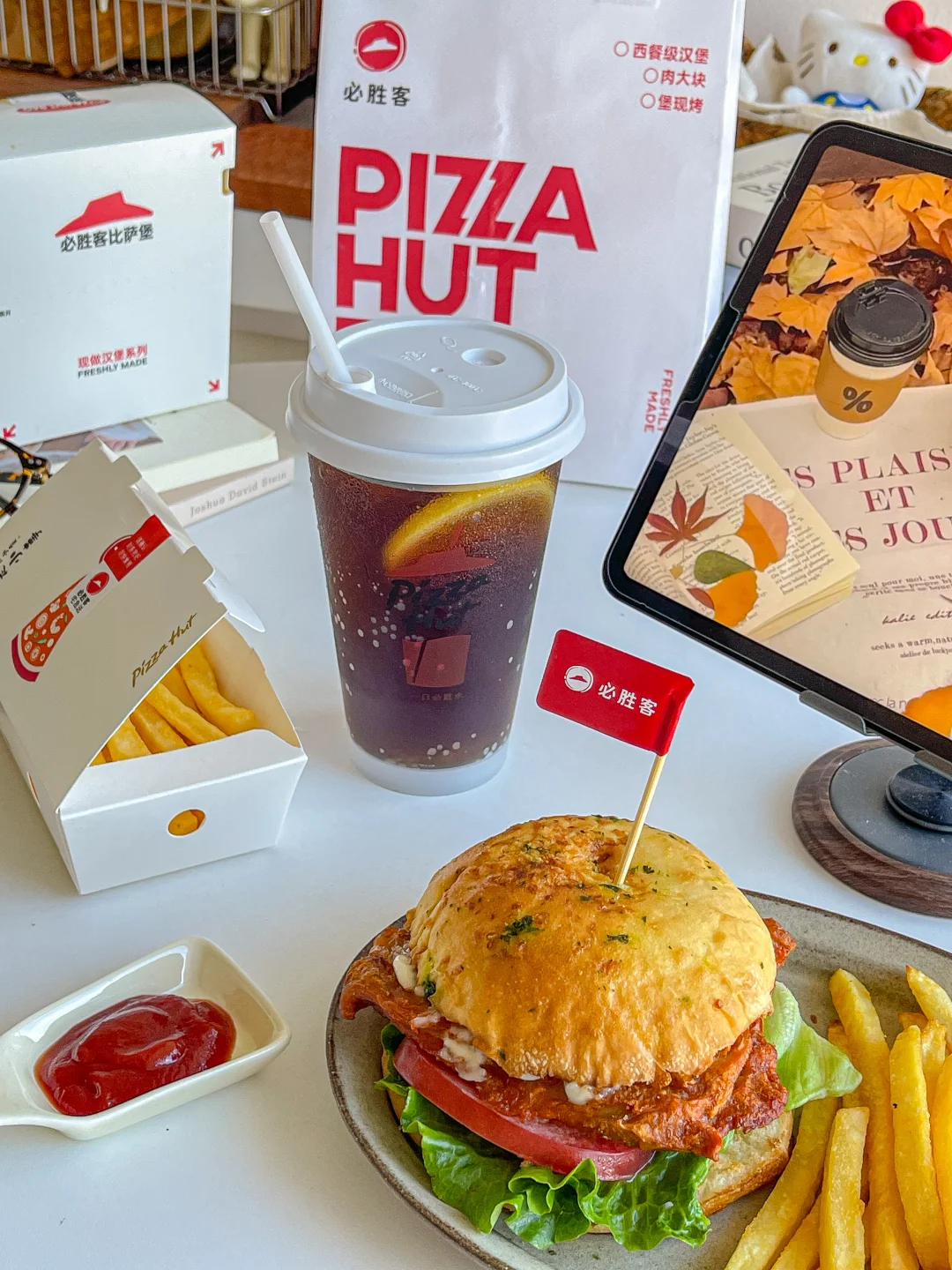 必胜客汉堡又又又上新了!!不光是好吃还➖脂!!🍔新出的爆汁超大大鸡腿堡直接戳中我 肉量比之前的汉堡还大一倍 而且打包外带只要24.9元就能拿下汉堡薯条可乐3件套 性价比直接拉满~