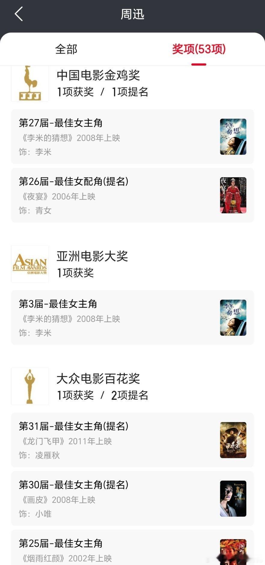 大🌺里没有金鸡影后的🈶 李冰冰,徐才女,VV金鸡百花都有的🈶🔒,周迅,章子怡金鸡提名最多🈶章子怡