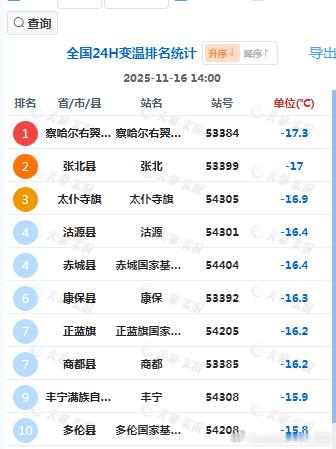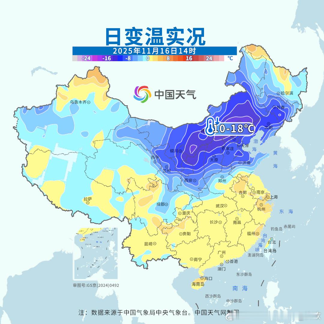 【大风降温】今天受到寒潮影响,北方多地出现大风降温。内蒙古巴林左旗出现10级阵风,巴林右旗、克什克腾旗、岗子、苏尼特左旗、河北涿鹿、围场、北京房山出现9级阵风。今天在内蒙古和河北交界一带降温超16℃,内蒙古察哈尔右翼后旗降17.3℃,河北张北降 17℃为各自省区14时降温最强站点。真是速冻。
