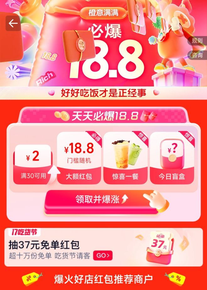 但饿了么并没有写信,而是在“天天逼爆18.8元红包”的页面,写了一句文案: