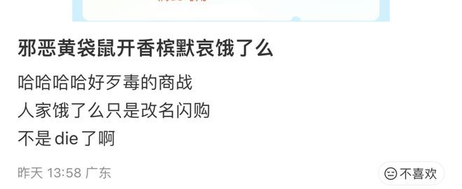 邪恶黄袋鼠,够歹毒的,“半路开香槟”默哀饿了么?人家只是更名,不是死了啊……
