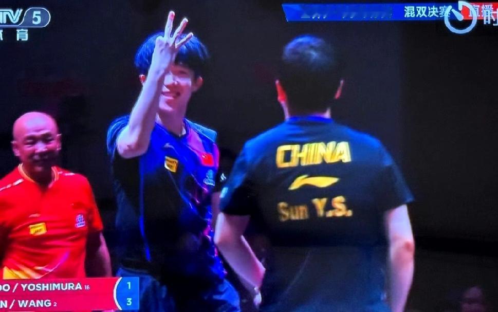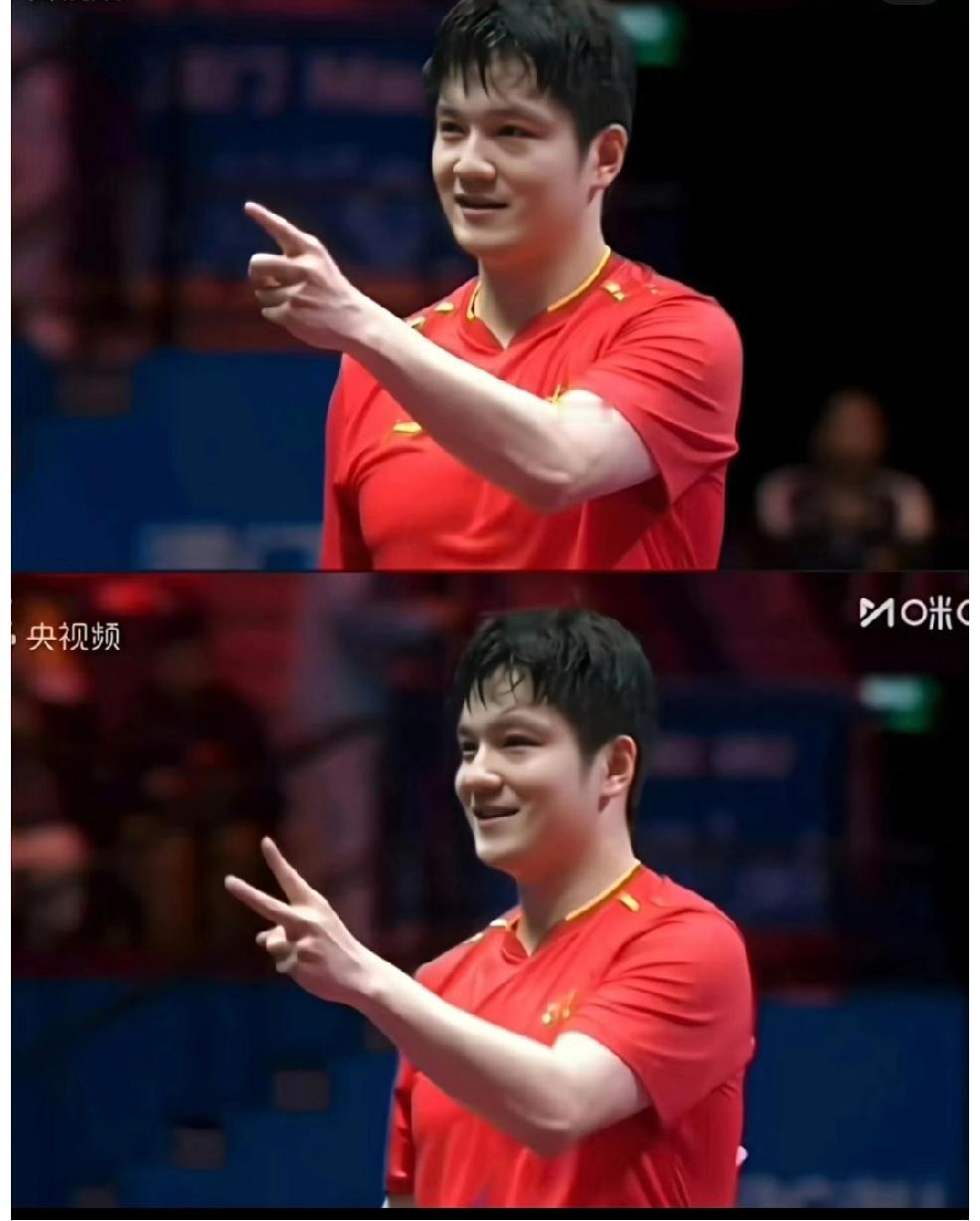 今天樊振东也有新的庆祝动作了, 打完比赛对着摄像做出了比两个手势的动作, 太潇洒,太好看啦! 是不是现在都就行得了冠军可以用手也比划出来呀。 前有黄镇廷用手比划杜姐没看懂[偷笑] 后有王楚钦/孙颖莎世乒赛混双三连冠, 王楚钦伸出三根手指。 樊振东卫冕全运男单冠军, 他身的是两根手指庆祝。