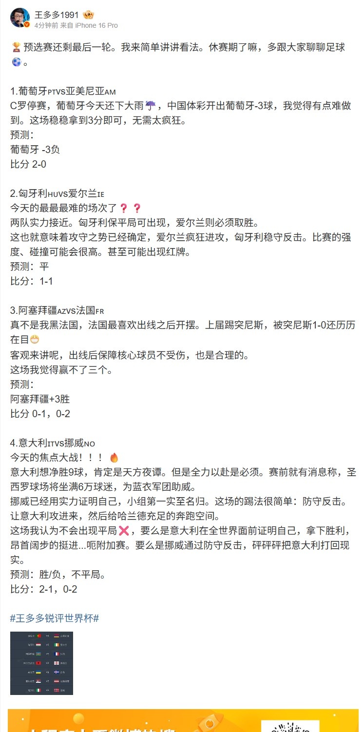 🏆预选赛还剩最后一轮。我来简单讲讲看法。休赛期了嘛,多跟大家聊聊足球⚽。
