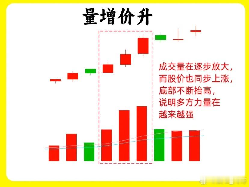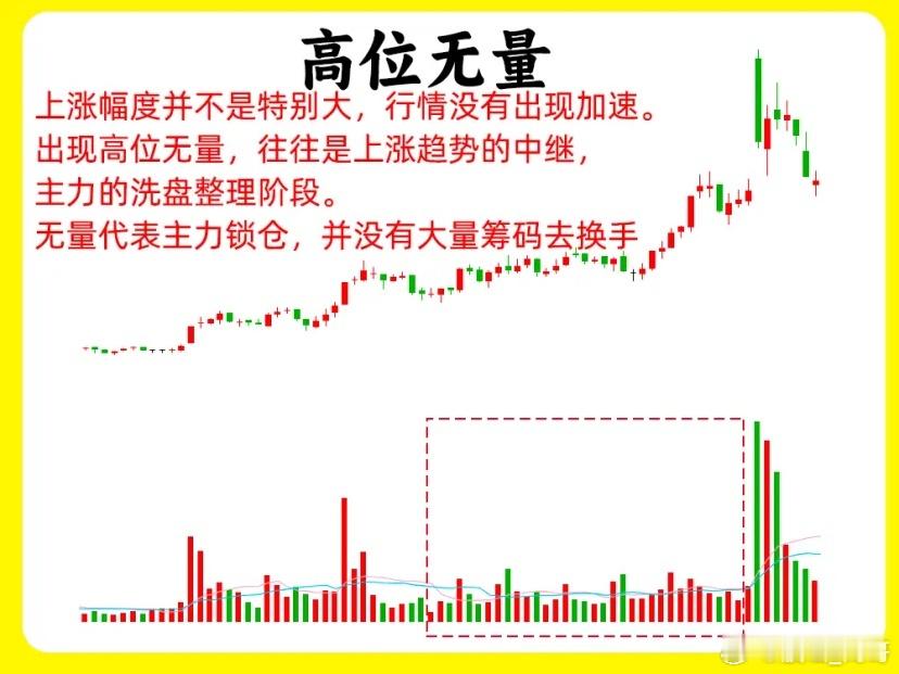 注意!在所有的技术分析里,成交量是最为重要的,看懂量价关系,就可以看明白主力的小心思。但是真正理解量价关系的人却很少,能及讲透彻的人就更少。今天分享十种量价关系,可以说涵盖了大部分的成交量变化。就算你是新手小白,也能轻松看懂还是老规矩,点赞收藏或评论“518”支持一下,每天分享炒股干货,以免以后想温习找不到了一、低位无量股价经过长时间的下跌以后,成交量出现大幅的缩量,虽然此时的下跌抛压已经基本释放完毕,当时无量说明此时交易很寡淡,没有人多少人关注,这种低位震荡的走势,一般时间周期比较久,我们散户在里面的话,就比较难受,时间成本太高二、低位放量股价在低位出现放量,同时出现中大阳线或者涨停板,说明主力开始看多,像倍量,是只有主力才能做到,主力大概就是在强势吸筹,或是已经吸筹完毕了。三、高位无量指的是股价已经一波拉升,但是上涨幅度并不是特别大,行情没有出现加速。出现高位无量,往往是上涨趋势的中继,主力的洗盘整理阶段。无量代表主力锁仓,并没有大量筹码去换手四、高位放量股价在高位,上涨趋势的末期,出现放量,次日不管是阴线还是阳线,往往都是主力出货,放量代表着筹码的换手,有卖有买才能成交量,说明此时的多空双方分歧比较大。五、量增价升这是比较健康的量价关系,成交量在逐步放大,而股价也同步上涨,底部不断抬高,说明多方力量在越来越强。此时股价在是低位还是高位,反映的主力背后逻辑也不同六、量增价跌成交量出现逐步放大,股价却出现下跌,说明此时的抛压比较大,而且是一天比较一天要大,说明此时股价开始已经处于下跌趋势当中,成交量越大,说明抛压就越大。七、量缩价升一般会在股价低位或是上涨趋势的初期,成交量出现缩量,反而股价却能上涨,说明此时主力已经控盘,大部分的筹码都在主力手里,主力控盘以后,只要少量资金就可以推动股价上涨八、量缩价跌成交量出现缩量,股价出现小幅下跌,出现出来洗盘阶段,比较多,或者股价在低位横盘阶段。九、量平价跌成交量出现平量,股价出现下跌。一般是出现下跌趋势的中继,虽然抛压并不强,但是承接的力量也同样很弱十、量平价升成交量没有明显的放大或缩小,股价反而出现上涨,说明主力已经锁仓,市场分歧比较小好了!以上就是量价关系比较常见的十种形态,下方我们准备了案例图,希望这期内容对你有帮助或者启发,记得帮忙点赞转发出去