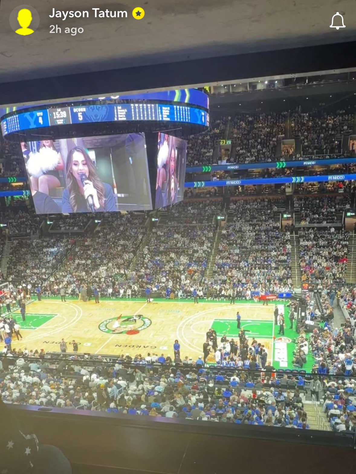 虎扑11月16日讯凯尔特人球员杰森-塔图姆更新社交媒体,晒出一张今日观战的现场照与球迷分享。