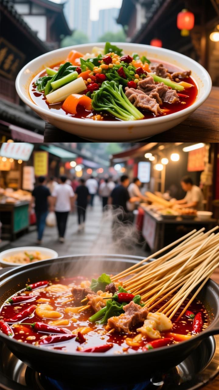 重庆和成都作为中国西南地区的重要城市,不仅以其丰富的历史文化闻名,还以其独特的美食文化吸引了众多食客。两座城市的美食各具特色,既有相似之处,也有明显的差异,充分展现了川渝地区的饮食魅力。 重庆的美食以麻辣鲜香著称,代表性的菜肴包括火锅、小面和串串香。重庆火锅以其麻辣味浓、底料丰富、汤底鲜香而闻名,辣而不燥,香气四溢。重庆火锅的特色在于使用大量的辣椒和花椒,带来强烈的麻辣体验,同时配以丰富的涮料,如牛肉、毛肚、鸭肠、蔬菜等,满足不同口味的需求。重庆小面则是一种简便而富有特色的面食,以细面条搭配特制的辣椒油、酱油、葱花、花生碎等调料,味道鲜辣爽口,体现了重庆人“辣而不燥”的饮食哲学。此外,串串香也是重庆的一大特色,将各种串串放入麻辣汤底中烫熟,既方便又美味,深受年轻人喜爱。 成都的美食则更偏向于精致与多样,代表菜肴包括火锅、麻婆豆腐、担担面、兔头等。成都火锅与重庆火锅类似,但在口味上更偏向于麻而不辣,注重汤底的鲜香和调料的丰富。麻婆豆腐是成都的经典菜肴,以麻辣鲜香的豆腐为主料,加入牛肉末、豆瓣酱等,味道浓郁且层次丰富。担担面则是一种细面配以花生酱、辣油、葱花、酱油等调料的面食,既有辣味又有香味,体现了成都人对细腻口感的追求。除此之外,成都的川菜还以“盖饭”、“串串”、“兔头”等多样化的小吃闻名,强调色香味俱佳,讲究调味的平衡与细腻。 总的来说,重庆的美食更偏向于浓烈、麻辣、直爽,强调辣味与麻味的刺激;而成都的美食则更注重调味的丰富与层次,既有麻辣的特色,也有细腻的香味。两座城市的美食都深受当地人喜爱,也成为吸引游客的重要文化名片。无论是重庆的火锅和串串,还是成都的小面和麻婆豆腐,都体现了川渝地区人们对生活的热爱与对味道的追求,彰显了丰富多彩的川渝美食文化。