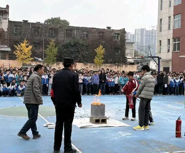 随后,刘主任详细讲解了灭火器的正确使用方法与灭火技巧,学校保安进行实操演示,还邀请学生代表进行了现场实践操作,进一步加深了学生对消防知识的理解与掌握。