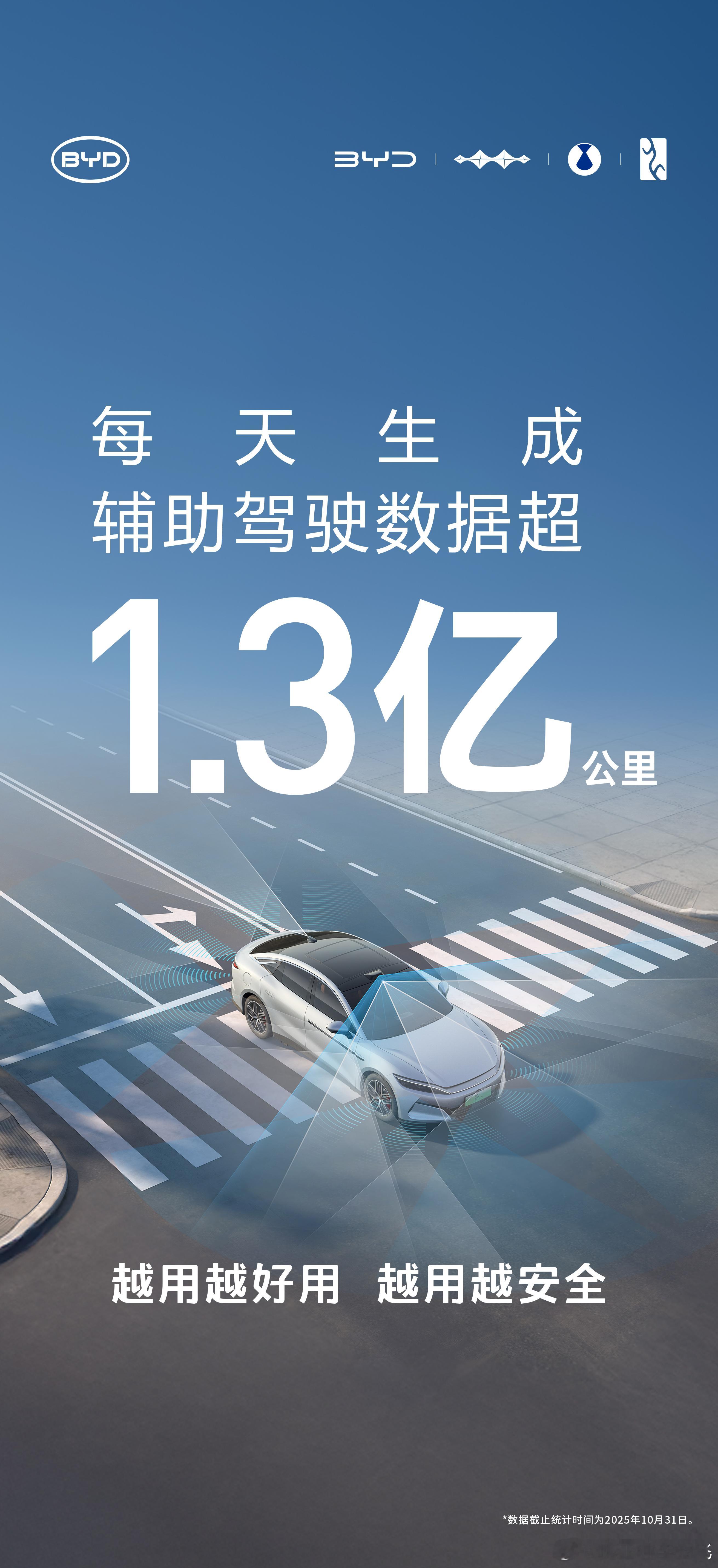 比亚迪天神之眼辅助驾驶累销突破200万辆每天生成辅助驾驶数据超1.3亿公里10月份辅助驾驶车型销售316759辆