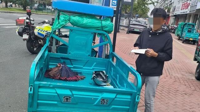 2025年11月6日15时59分许,兰某驾驶套牌电动三轮车途径吴兴大道时被执勤交警查获,现场对其进行教育,并依法扣留车辆。