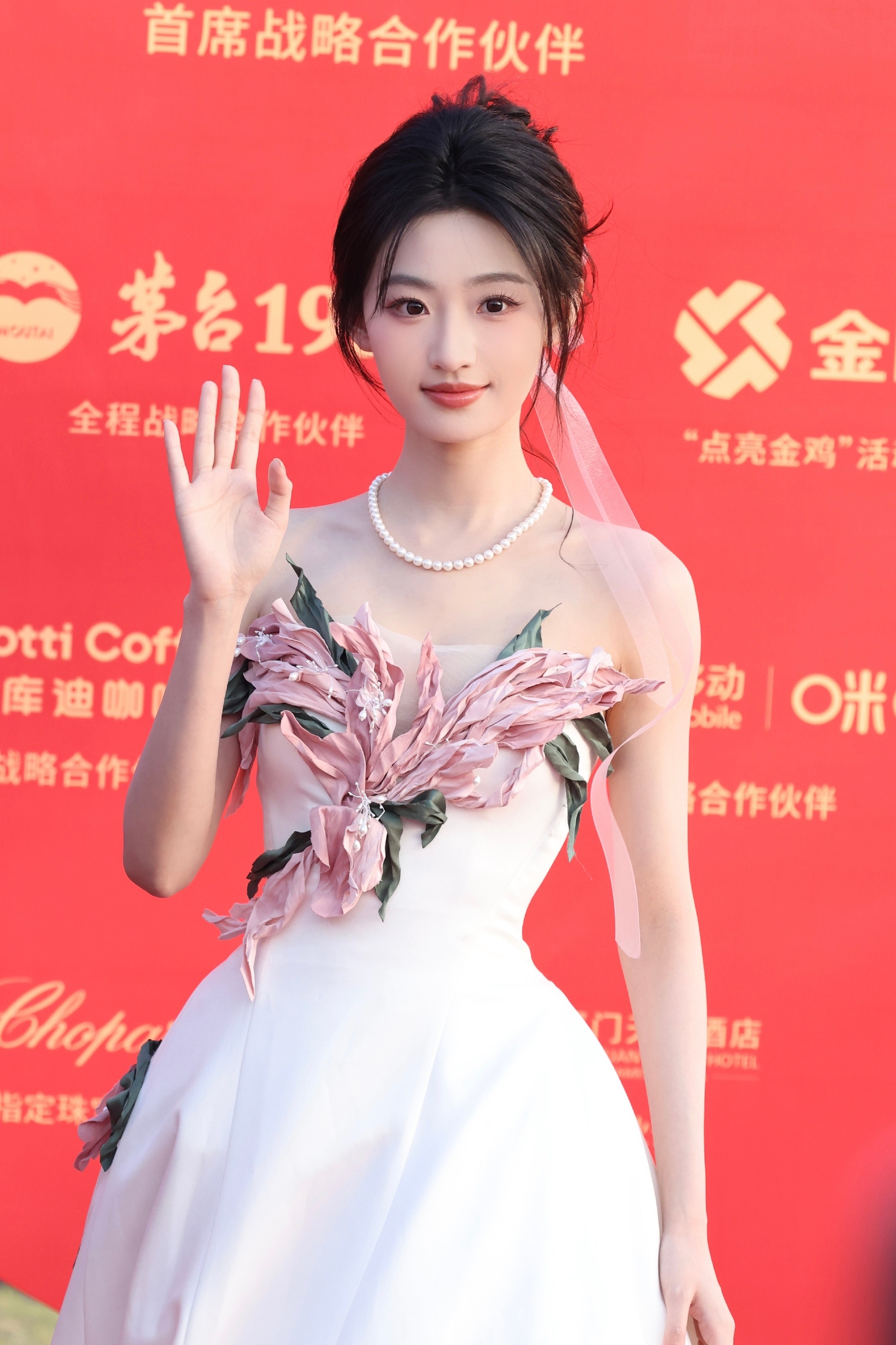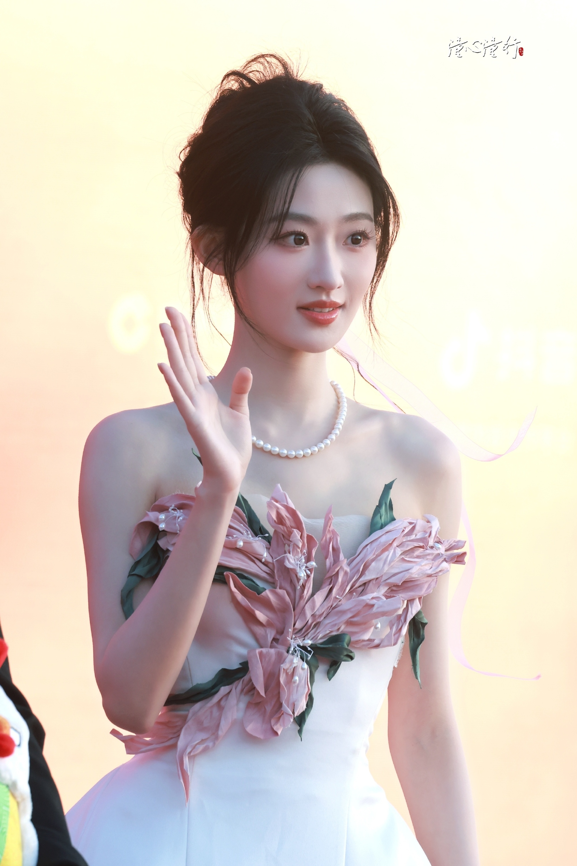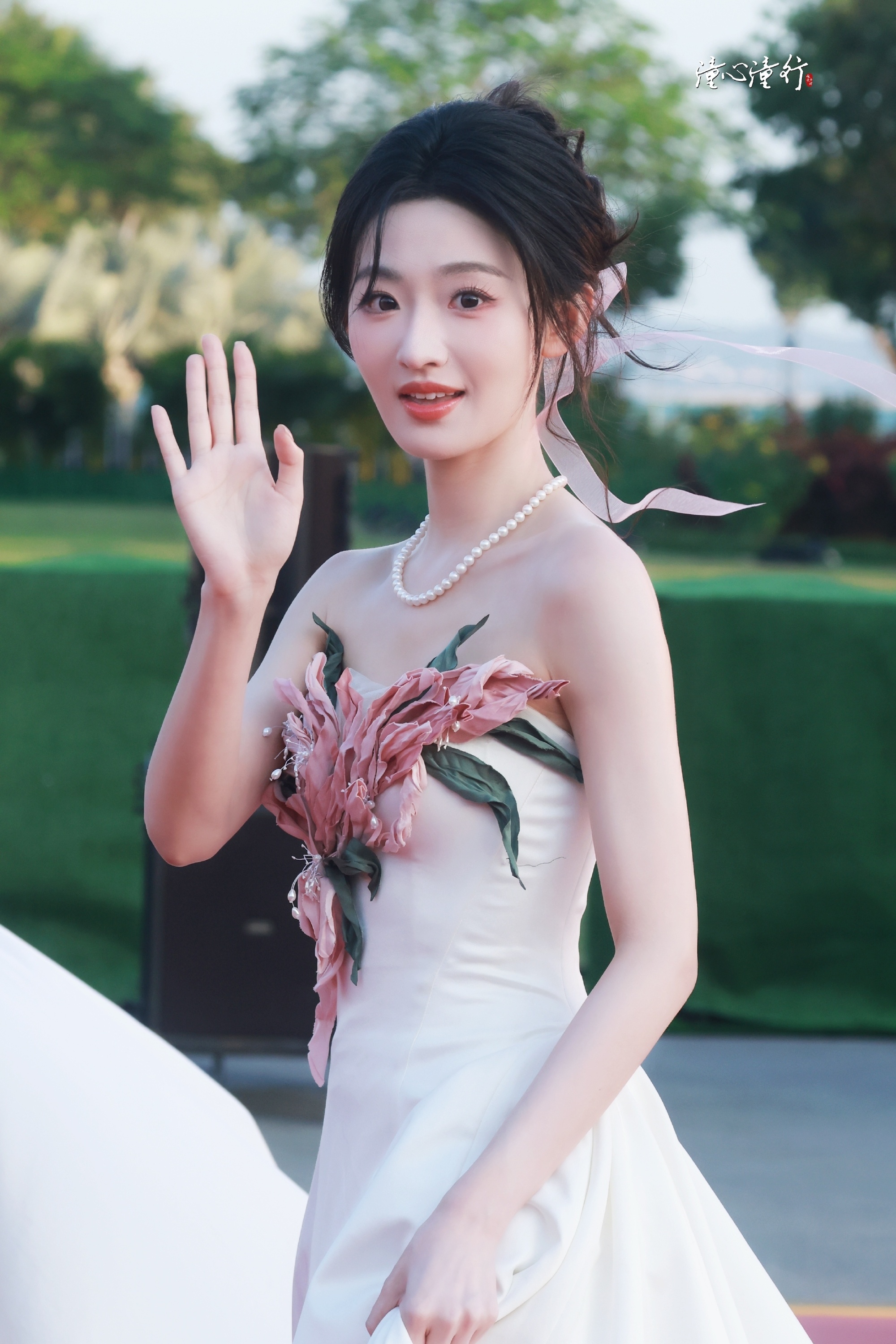 杨雨潼白裙在光影里太温柔,粉花轻盈点缀着,整个人明媚得像晚风