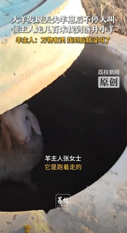 “万物都有灵!”内蒙古巴彦淖尔,一女子赶羊回家后,发现一只母羊变得焦躁不安,不断对着她“咩咩”叫!女子意识到少了一只小羊,就打开羊圈门,让母羊出去寻找,最终在枯井里发现了被困的小羊。网友:母爱不分物种! 据荔枝新闻11月11日报道,张女士起初没当回事,心想这羊可能是没吃饱,还想在外面多溜达一会儿。 但她很快就觉得不对劲了,这只母羊她有印象,前不久刚生了只小羊羔,整天形影不离的,可现在,这母羊身边空空如也,那只总是跟在屁股后头的小家伙却不见了踪影。 再看母羊这焦急万分的模样,一个念头闪过张女士的脑海:小羊羔怕是出事了! 这母羊的眼神里充满了哀求,它不停地用头蹭着张女士的腿,然后又扭头望向羊圈外的旷野,那意思再明白不过了——我的孩子丢了,你快跟我来! 张女士的心一下子就被揪紧了,她二话没说,立马打开了刚关上的羊圈门,跟着母羊就冲了出去。 母羊在前面带路,走得飞快,几乎是一路小跑,嘴里的叫声也从刚才的焦急变成了带着哭腔的呼唤,张女士紧紧跟在后面,心也提到了嗓子眼。 草原的傍晚有些凉,风吹过耳边,只剩下母羊急促的蹄子声和它那一声声的呼喊,她们大概跑出了几百米远,来到了一处荒废的枯井旁边。 这口井平时很少有人经过,周围长满了杂草,只见那只母羊跑到井边,突然停下了脚步,也不再叫了,只是伸长了脖子,死死地盯着黑漆漆的井口,然后开始绕着井口一圈一圈地打转,显得愈发焦躁不安。 张女士一看这情形,心里顿时“咯噔”一下,她三步并作两步冲到井边,探头往下一看,借着微弱的光线,果然发现井底有个白色的小东西在动弹! 正是那只走丢的小羊羔!小家伙不知道怎么掉下去的,在井底害怕地瑟瑟发抖,听到井上传来动静,它也抬起头,发出了微弱的“咩咩”声,像是在回应自己的妈妈。 原来是掉进井里了!张女士恍然大悟,要不是这只聪明的母羊,这小家伙可能就真的没命了,她不敢耽搁,立刻找来了绳子和工具。 井虽然不深,但一个人下去还是有些费劲,她小心翼翼地把绳子套在小羊身上,费了九牛二虎之力,终于把它从井底安全地拉了上来。 小羊一回到地面,立马就扑进了妈妈的怀里,母羊伸出舌头,一遍又一遍地舔舐着自己失而复得的孩子,喉咙里发出满足又疼爱的咕噜声。 那场面,看得张女士心里又酸又暖,随后,母羊领着一瘸一拐的小羊羔,蹦蹦跳跳地跟在张女士身后,一起回了家。 这一次,它们头也不回地钻进了羊圈,紧紧地依偎在一起,这件事让很多网友都感动得不行。有人说:“这哪是羊啊,这简直就是成精了!发现孩子丢了,还知道找人帮忙,这智商太高了。” 还有网友评论道:“母爱真的不分物种,无论是人还是动物,为了孩子都能爆发出惊人的能量和智慧,这只母羊的眼神,看得我心里发酸。” 确实,动物或许不会说话,但它们表达爱的方式却直接又纯粹,那种源自本能的亲情,足以跨越物种的界限,触动我们内心最柔软的地方。 我们常说“万物有灵”,以前可能觉得这话有点玄乎,但通过这件事,我们才真切地感受到,每一个生命都值得被尊重。 这只母羊用它的行动告诉我们,爱是一种本能,一种不需要语言就能传递的力量。 信源:荔枝新闻2025-11-11——大羊发现丢失羊崽后不停大叫 领主人走几百米找到落井小羊 羊主人:万物有灵 找到后就没叫了