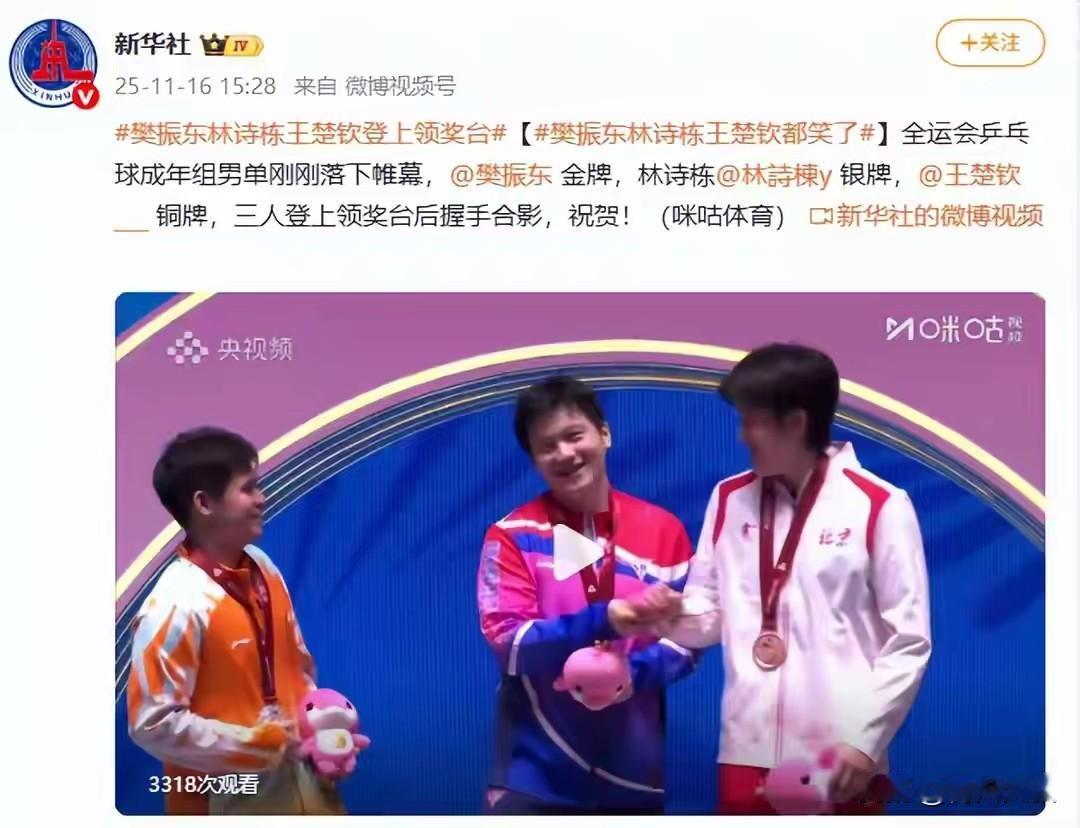 三姐妹又凑一起领奖了,这次王曼昱金牌,孙颖莎银牌,陈梦铜牌。 男单樊振东,王楚钦也重新握手了,还加一个小尾巴林诗栋! 仿佛回到了去年, 巴黎奥运会的周期。 如果樊振东,陈梦回归, 国乒还能稳定领先3年没问题!