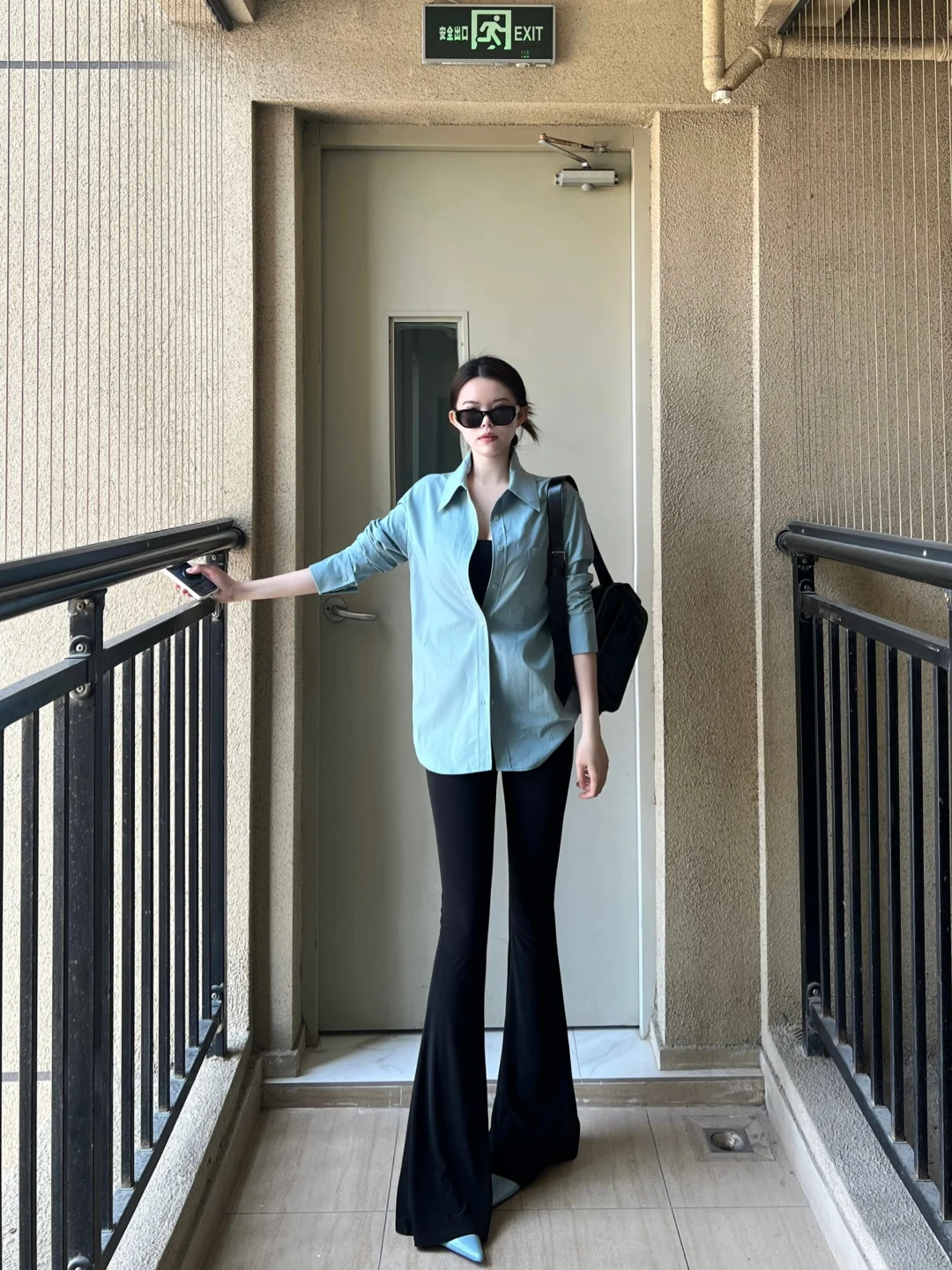 喇叭裤 衬衣控 显瘦穿搭 气质穿搭