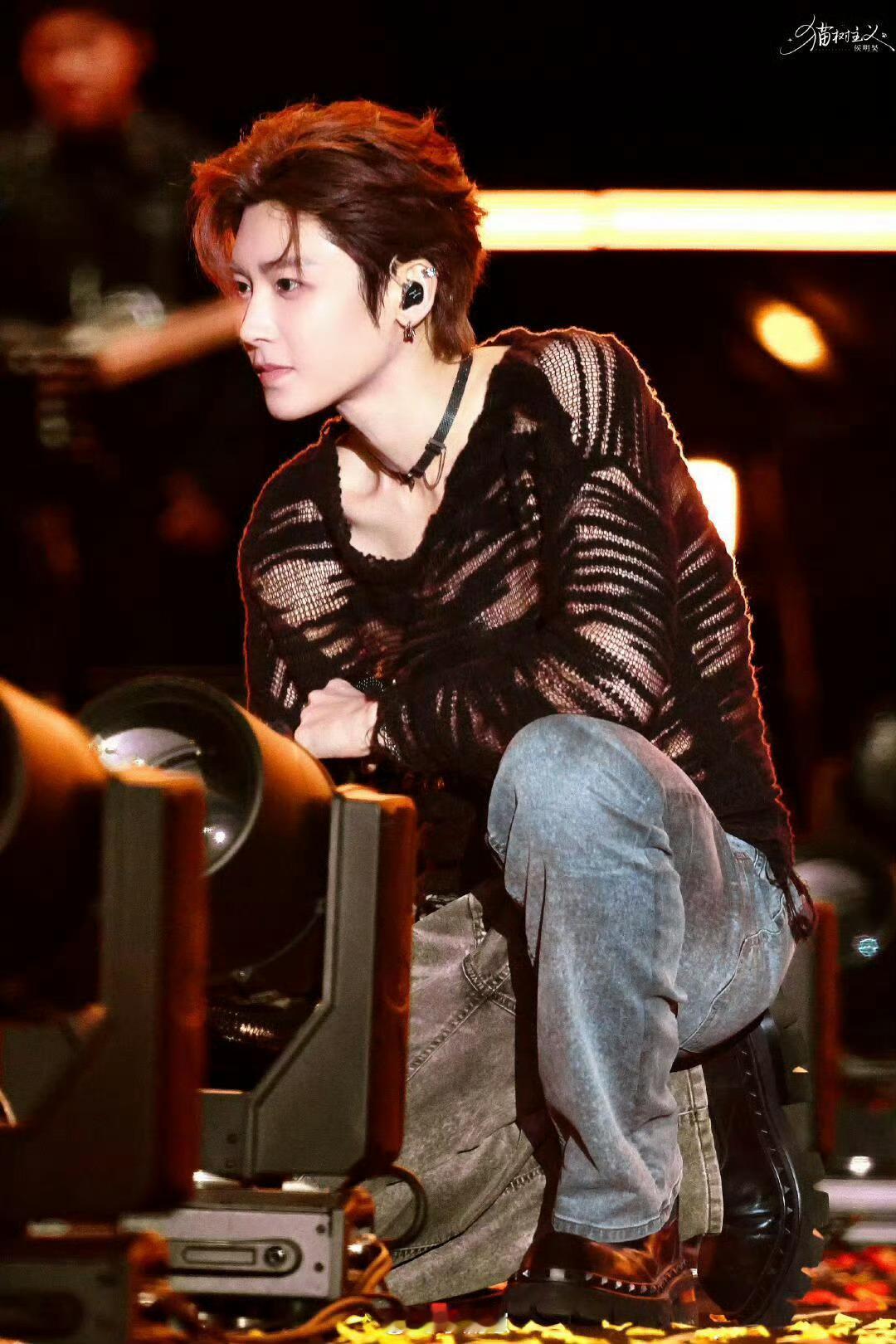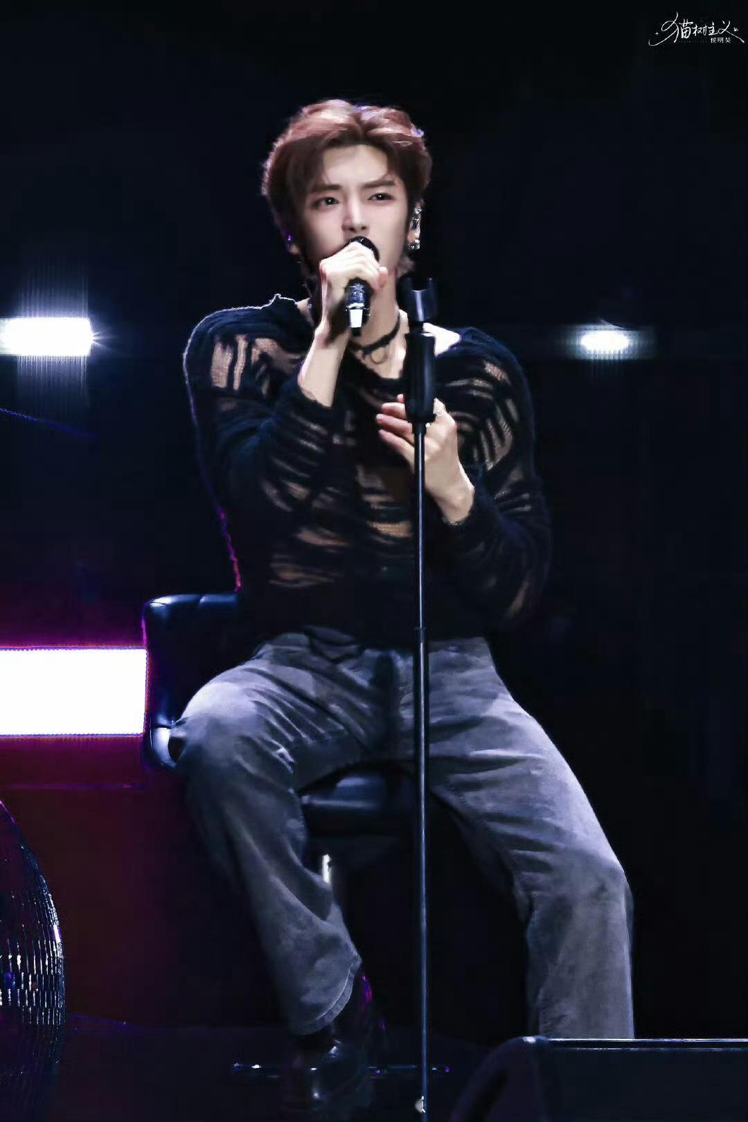 南京音乐节侯明昊太会了!黑色镂空衫配锁骨链超魅,优越锁骨线条吸睛,甜野气场拉满,