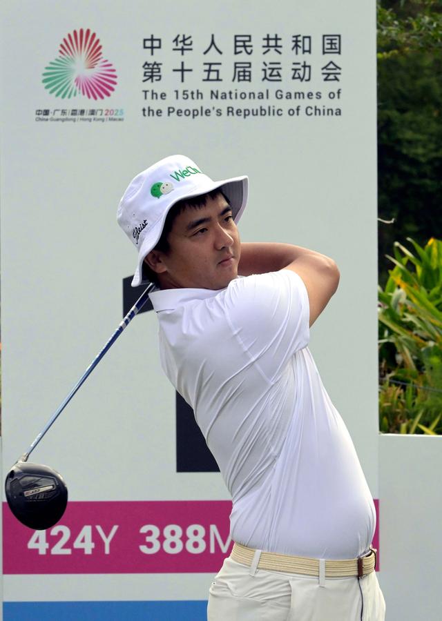 新华社照片,香港,2025年11月15日11月15日,上海队选手窦泽成在比赛中。当日,第十五届全国运动会高尔夫球赛男子个人赛、团体赛第三轮小组赛在香港粉岭高尔夫球会举行。新华社发(卢炳辉摄)