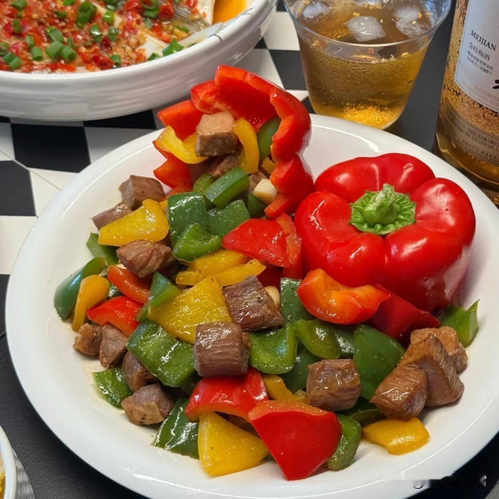 今晚的快乐是麻辣花甲给的鲜,是彩椒牛肉给的香,再配一口冰冰的梅见,把日子里的细碎疲惫都浸成了甜。