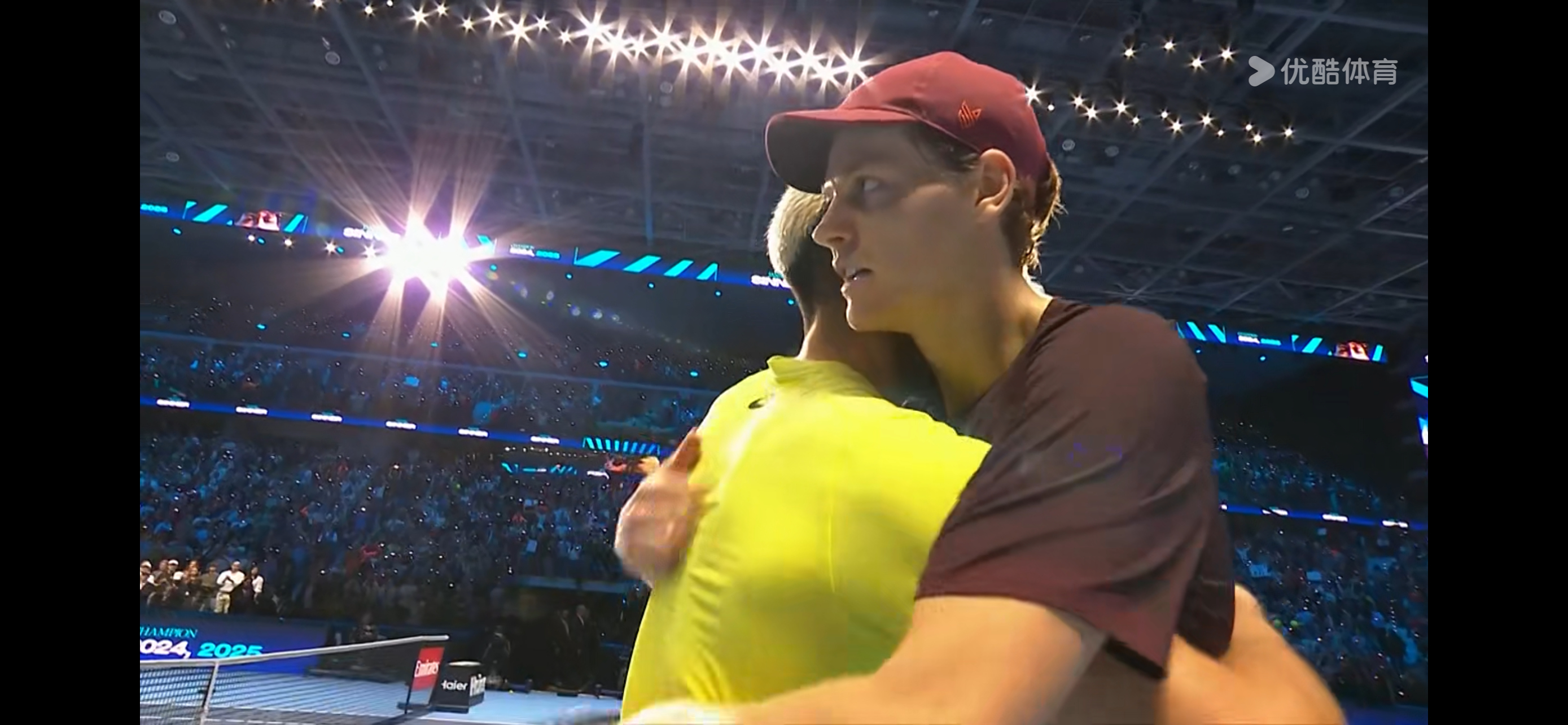 辛纳在第二盘1-3落后下实现逆转,最终以大比分7-6(4)、7-5险胜阿尔卡拉斯,完成总决赛的卫冕!