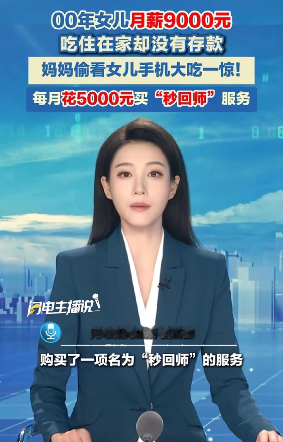 “太不可思议了!”00后女儿月薪9000元,吃住在家,却没有存下钱,母亲偷看女儿手机,结果大吃一惊。 根据闪电新闻的报道,一名00后女儿月薪9000,吃住都在家里面。没有别的花销,但是也攒不下什么钱,于是母亲决定看看女儿手机。才发现,女儿花5000元定制了“秒回师”的服务。 这项服务就是有真人回复信息 、电话、视频回应,不会见面 。交流的内容仅限于工作、友情和家庭烦恼。 现在这位母亲很纠结 ,这项高昂的情感服务是否值得 ? 网友热议,我辛辛苦苦上班都没这个挣钱,我不上班了,谁需要?我绝对秒回,整夜不睡觉的都能给你秒回。 对此事,你有什么看法? 冬日生活打卡季 (信息来源:闪电新闻)