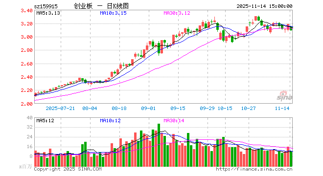 11月14日,创业板ETF(159915)跌2.80%,成交额38.19亿元。当日份额增加1.78亿份,最新份额为324.18亿份,近20个交易日份额减少15.37亿份。最新资产净值计算值为1002.09亿元。