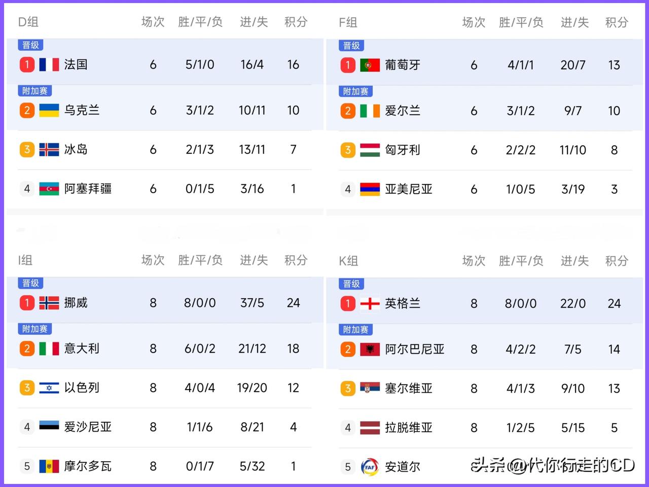 葡萄牙、挪威出线,世界杯欧预赛最后一轮24场比赛,决定欧洲球队命运的只有6场: