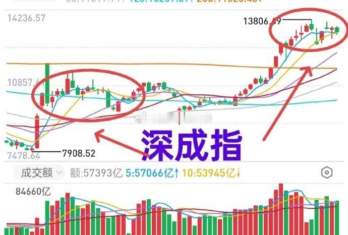 A股:看懂了深成指(图),就看懂了市场趋势。什么时候,深成指调整到位了,整个市场才有可能再起升势。1,上证与银行上证综指被银行架着走,对于整个市场来说并不“真实”。银行板块站起来,稳住了市场,这是银行板块的作用。但,对于多数投资者来说,银行板块的持续性上涨如同梦魇。因为银行板块的持续性上涨,会让市场失去活力。基本上每次银行板块上涨,个股表现就颓废,就是鲜活的例证。2,深成指深成指目前的状态,看看它的周线趋势就很清晰了。与去年10月份到12月份的走势比较,会发现目前深成指的走势是很相似的,呈现的是类三角形(收敛)格局。前一次,市场是经历过大幅度下跌(去年1月份),完成了筹码转换之后再次上行。这一次如果不出现意外利空,估计不会出现大幅度下跌。毕竟,管理层也强调过了——防止大起大落。这样一来,市场大概率会通过时间换空间的方式完成调整。10月份有一次较大幅度的下跌,深成指最低跌到了12677点。目前MA20周均线位于12327点,距离12677点并不远。理想的方式,市场在12700点上方拉锯(12700~12800点) ,等待MA20周均线走上来。比较伤人的走势,则是市场主动性下探,与MA20周均线汇合,或者说向MA20均线靠拢。比较上证综指和深成指的整体走势,深成指涨幅是落后于上证综指的。因为上证综指已经越过了2021年的高点,而深成指距离2021年的高点16293点还有3000点……个人观点,仅供参考,对错勿怪!理财有风险,投资需谨慎!