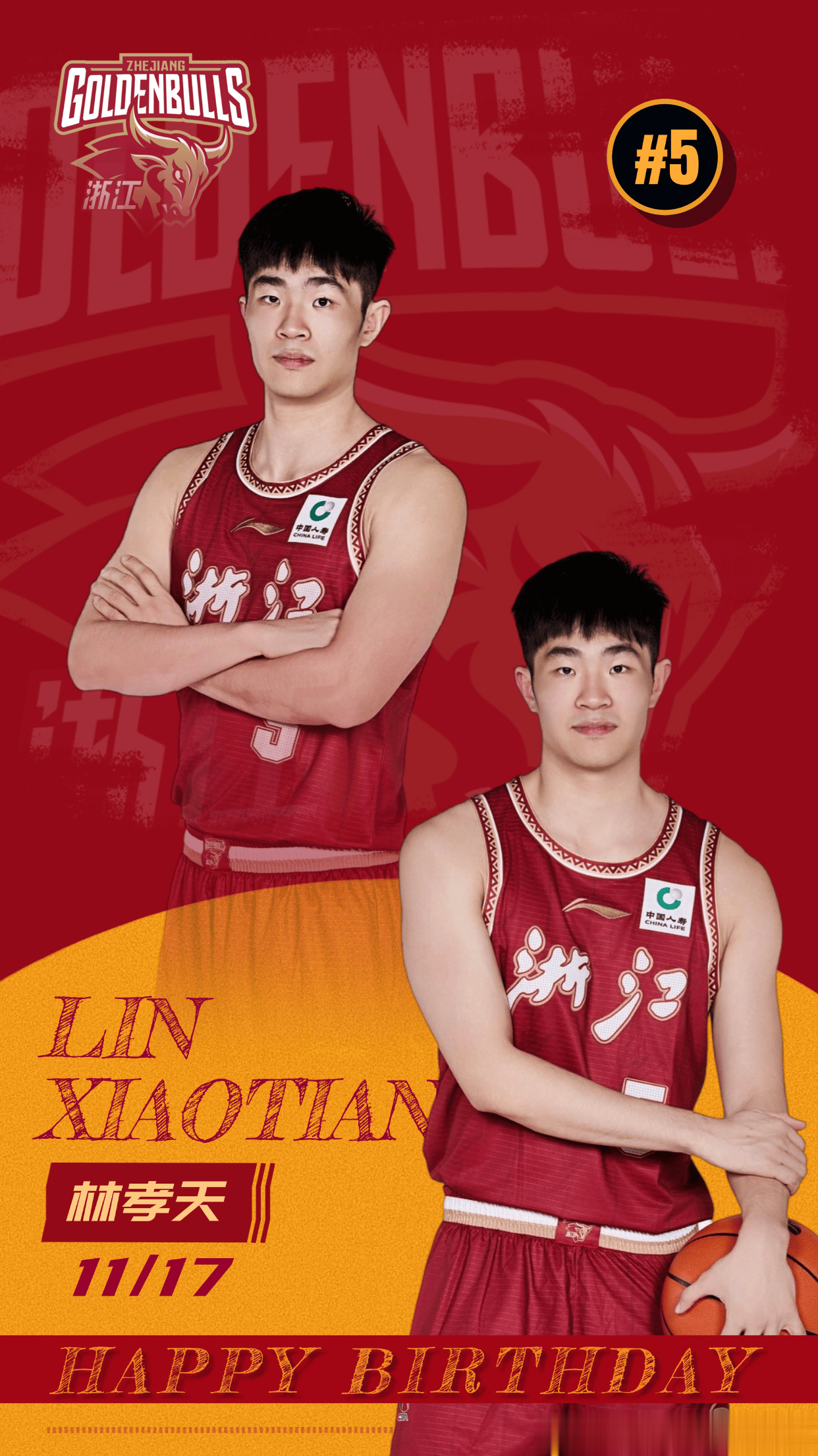 虎扑11月17日讯浙江男篮官方分享林孝天生日海报。