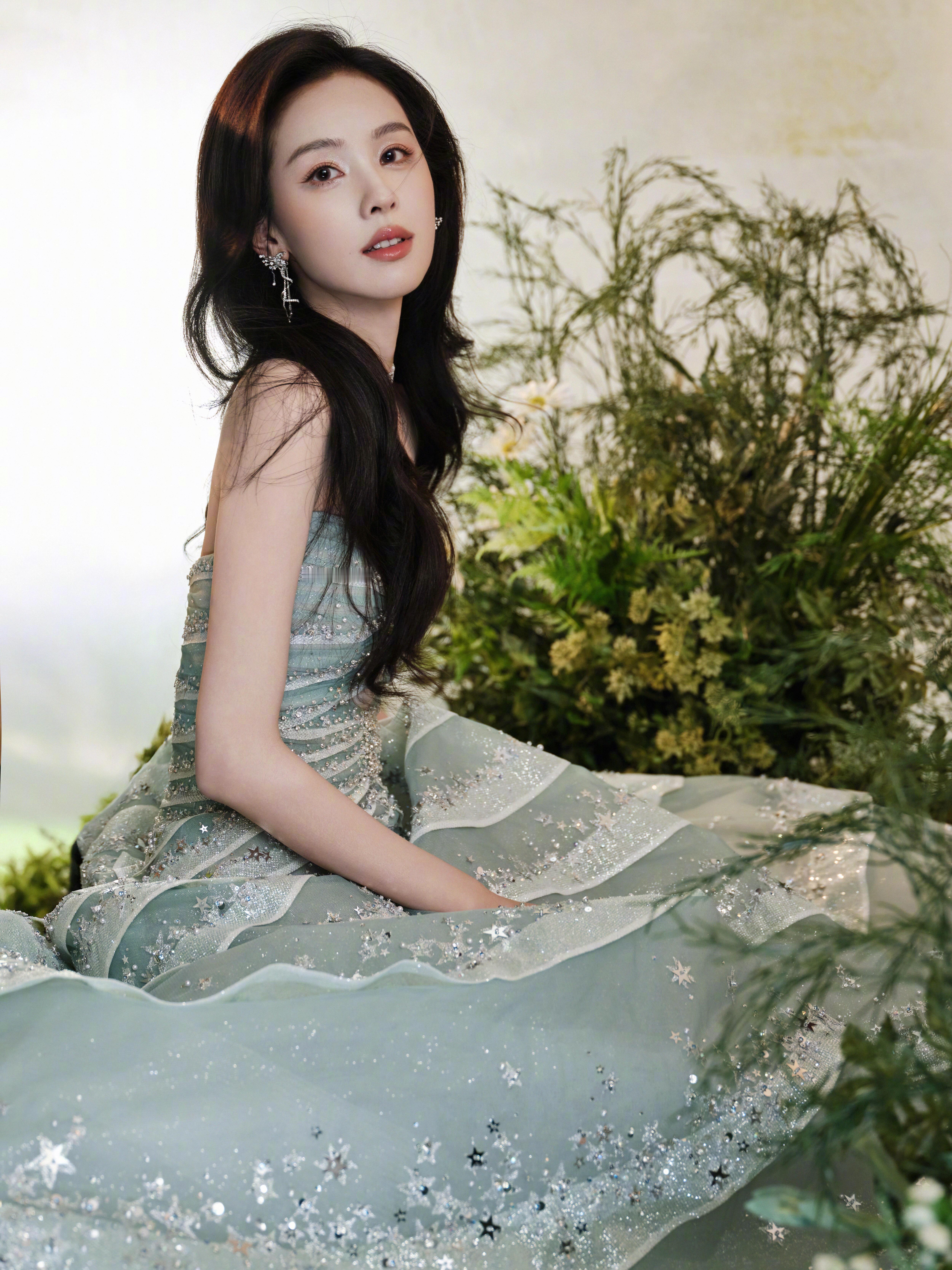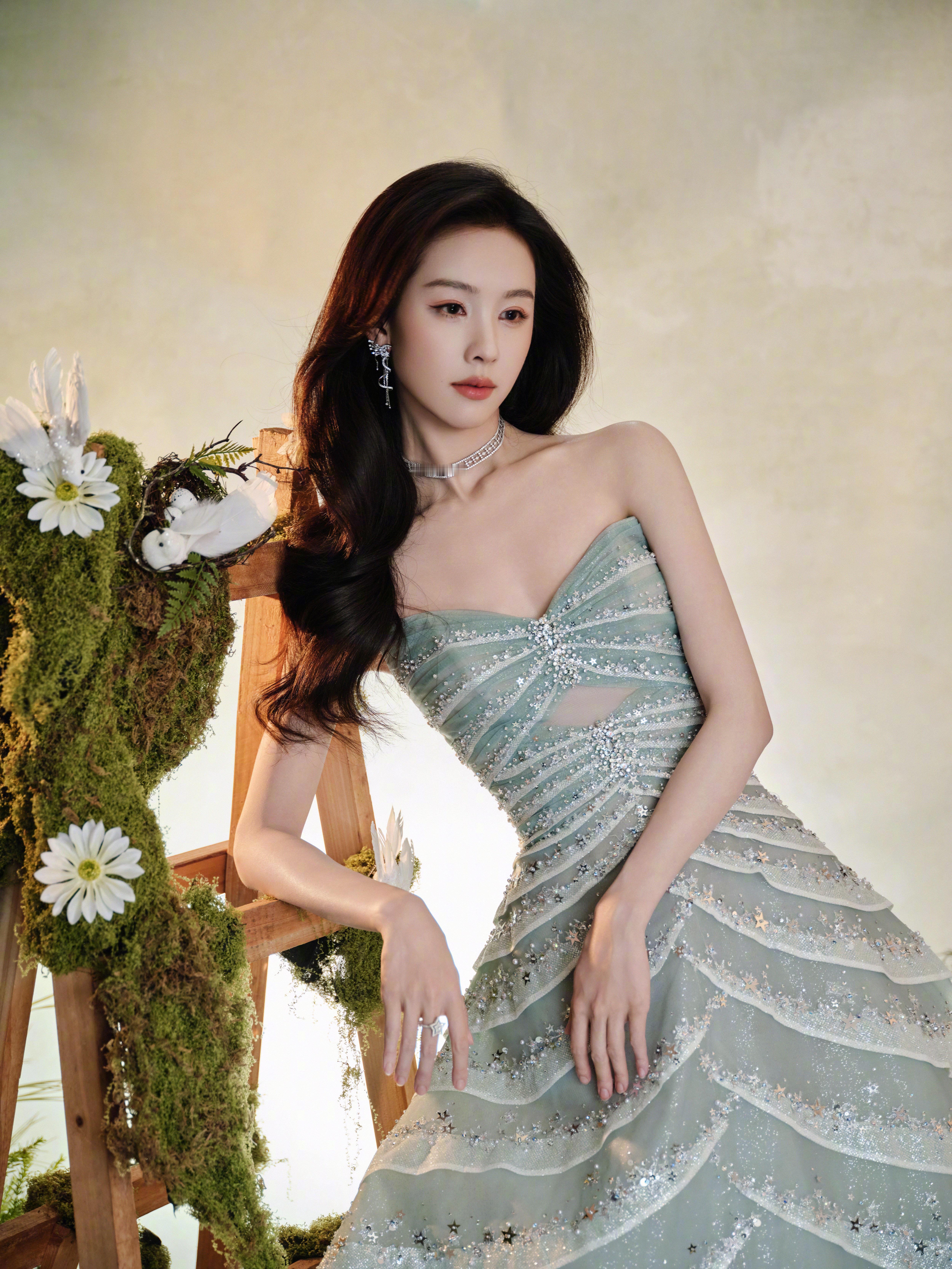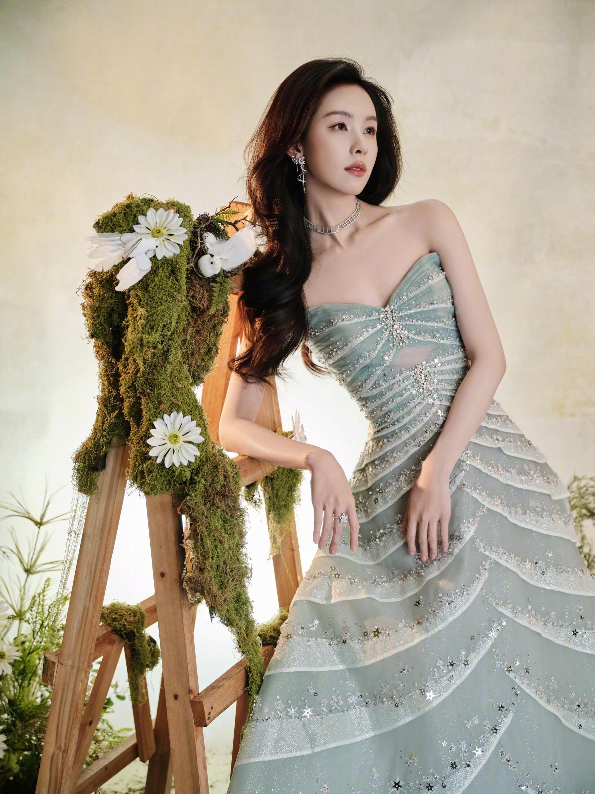 陈都灵 x IVAN YONG COUTURE陈都灵线下活动造型,身着一袭IVAN YONG COUTURE抹胸礼服,搭配闪耀钻石珠宝,层层堆叠的花瓣裙摆设计,配合钻饰、亮片和细闪,精致高贵,完全是森系精灵的风格