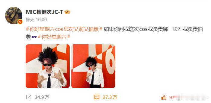 离开了檀健次谁还逗我笑。。。爆炸头造型也不出意外很好地驾驭了,果然人帅的话怎样都