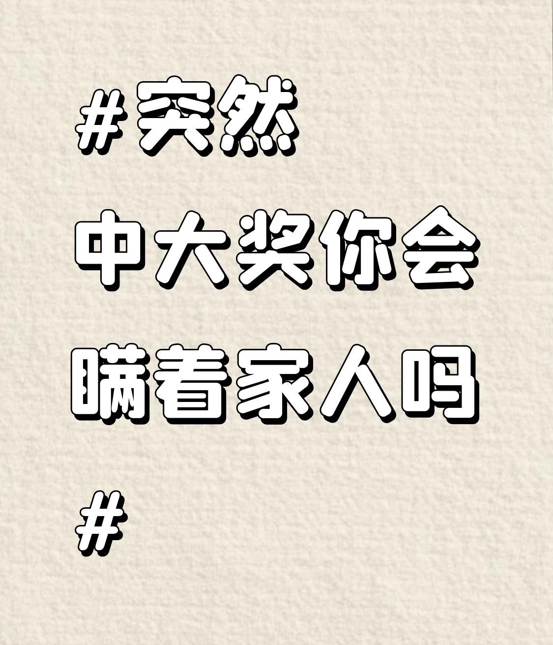 突然中大奖你会瞒着家人吗 突然中大奖,瞒不瞒家人还真得好好琢磨。就像日本那66岁退休男子S先生,中了6亿日元(约2756万元),只跟老婆说中了500万日元(约23万元),自己却偷偷奢侈享受,半年花掉1800万日元(约83万元)。结果呢,孤独、罪恶感全来了,精神萎靡。 要是和家人关系好,大家通情达理,一起分享喜悦、规划奖金用途,那告诉他们挺好。可要是家里有陋习,或者消息传得快,七大姑八大姨都来借钱,那还是自己藏着吧,不然真成了烦恼源泉。
