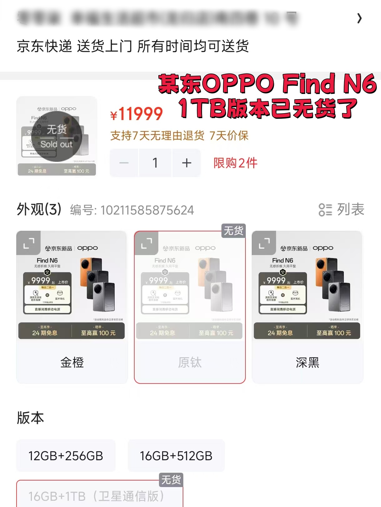 刷了一下午某东某宝,1TB版本全部显示“无货”...