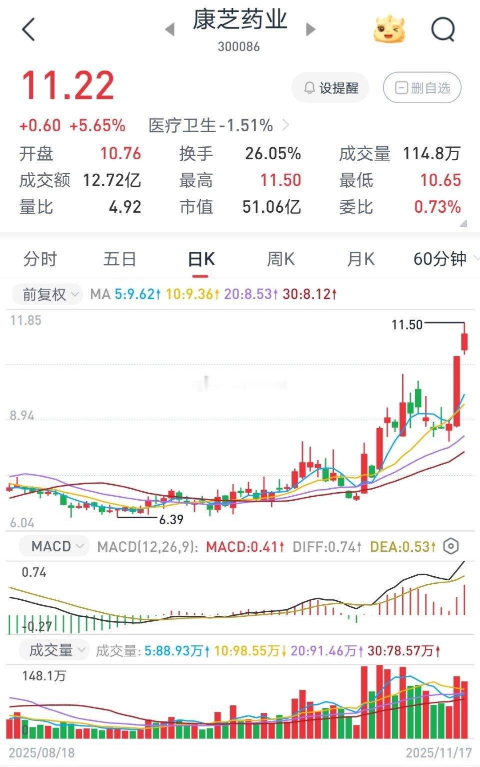 康芝药业我准备止盈出局了,也有20来个点的大肉了