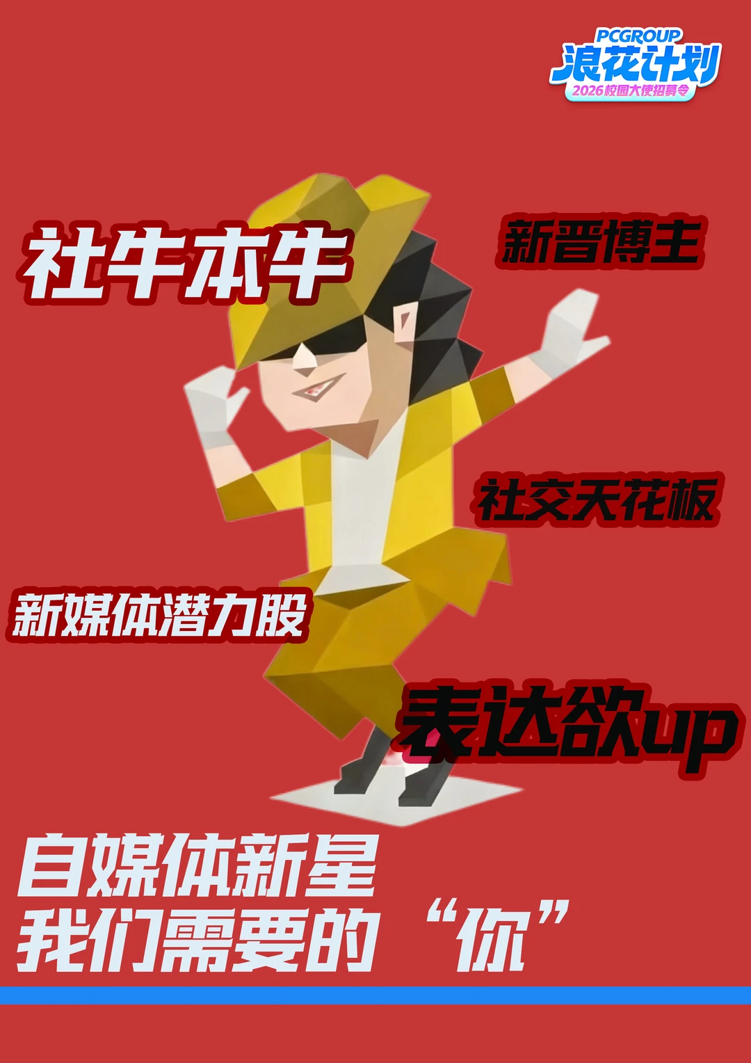 每一个不怕表现的人💪 你自然亲切的表达就是传播王牌‼ 成为太平洋网络浪花计划校园大使🎓 解锁自媒体账号运营🌟 承接线上线下推广活动🎡 还能获取流量扶持资源!