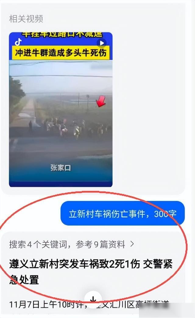 2.捏造“贵州遵义播州区三合镇货车失控撞向牛圈,造成群众恐慌”。