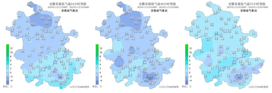 未来三天全省最低气温预报