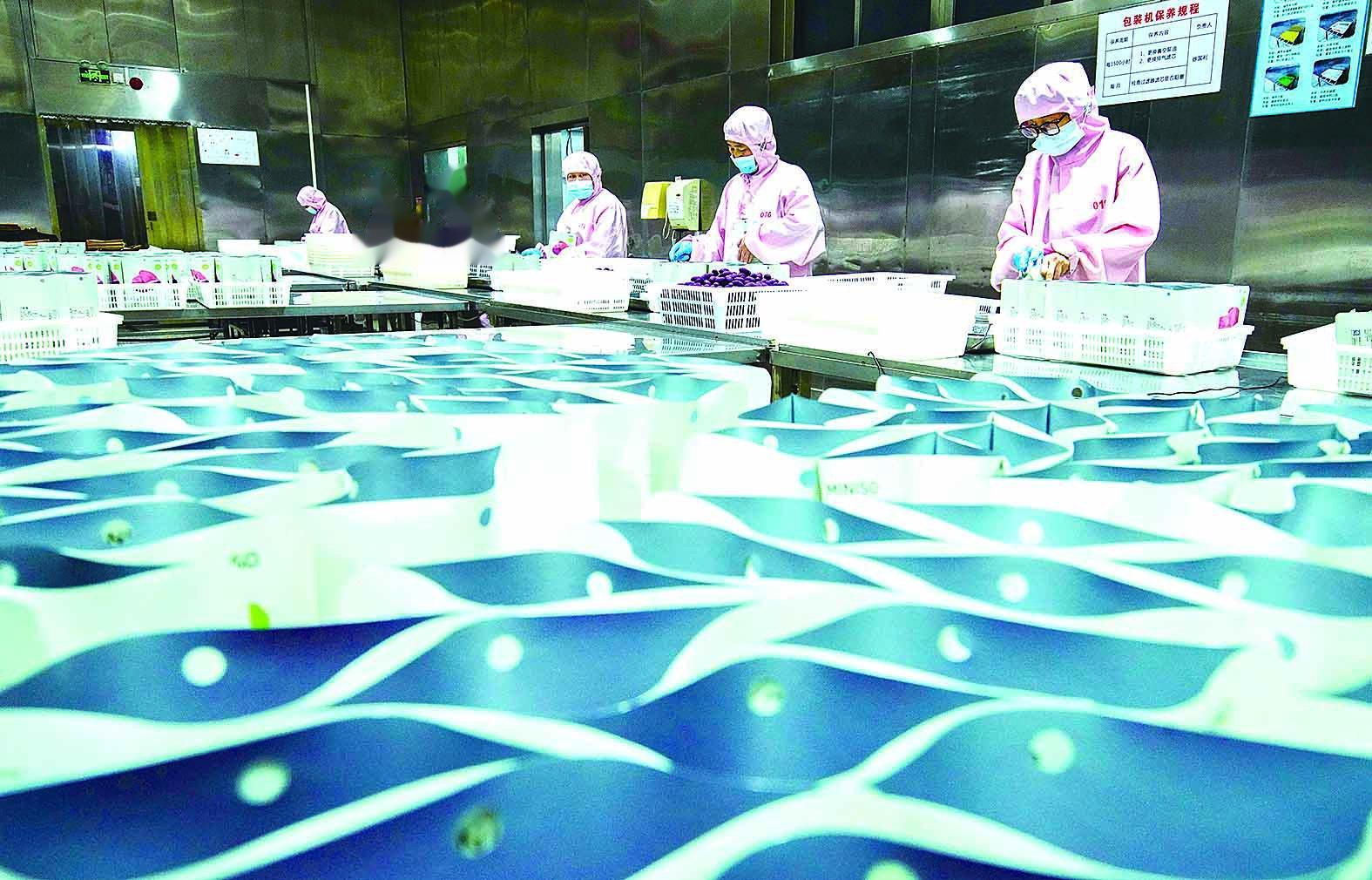 图为11月14日在河北省遵化市苏家洼镇的一家食品企业罐装车间内,工人在工作。