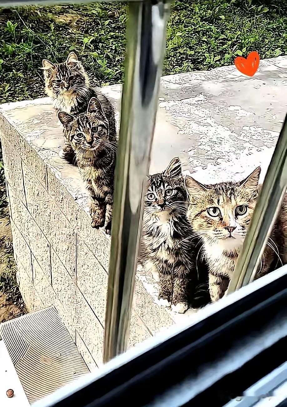谁懂啊!喂两次火腿肠,被猫一家四口“堵门”求收养 网友最近彻底被一群“毛孩子