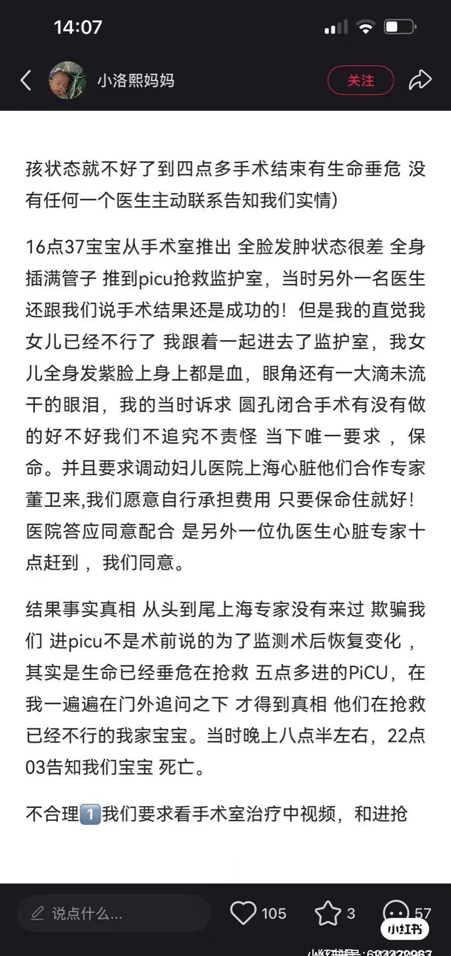 希望真相大白! 只敢放这张照片,因为另外的那张,我不敢再看! 作为旁观者希望真相大白!让宝宝走的明明白白,而不是设法堵嘴!如果真的不是医生的责任也请还医生公道,毕竟今年也发生了医生被冤枉的事情。不要再造悲剧,所有人都只是想要一个真相!正义永远不会缺席 想让更多人看到 真让我大开眼界了 群众的眼睛是雪亮的