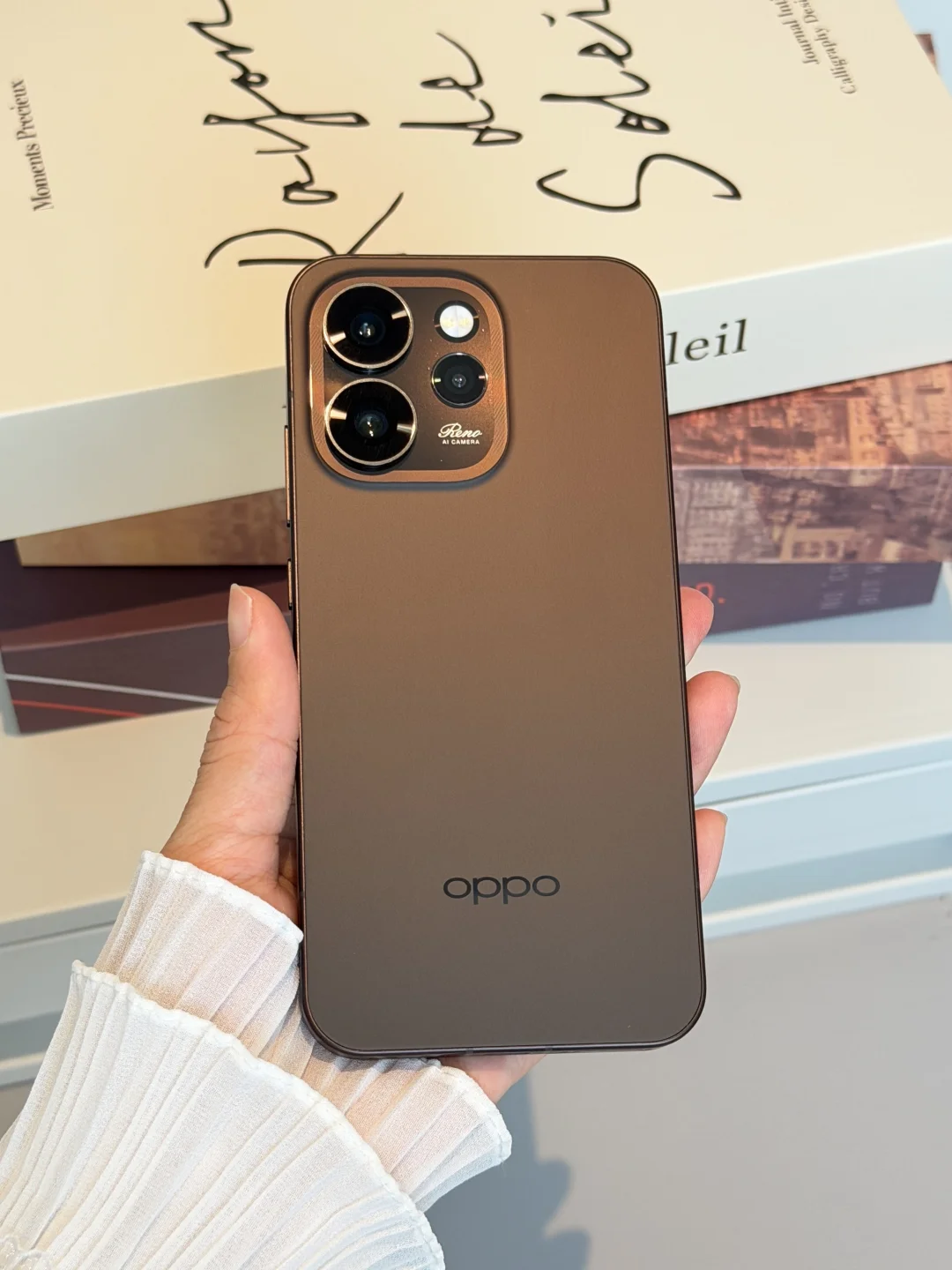 [哇R]提前给大家分享一下OPPO Reno15「可露丽棕」,光下呈现出柔和的美拉德色感,秋冬氛围直接拉满。[自拍R] [偷笑R]6.32英寸的轻薄直屏和金属中框,手感精致又趁手,质感方面确实没得挑。[斜眼R] [喝奶茶R]整体给人一种精致又温暖的日常感,颜值非常讨喜。你们喜欢这个颜色吗?[暗中观察R]